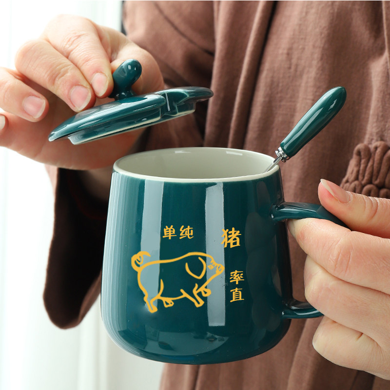 十二生肖杯马克杯情侣杯星座杯牛奶恒温杯子带盖勺logo定制暖暖杯