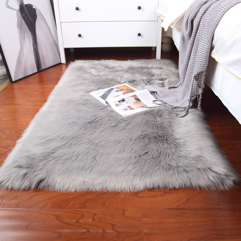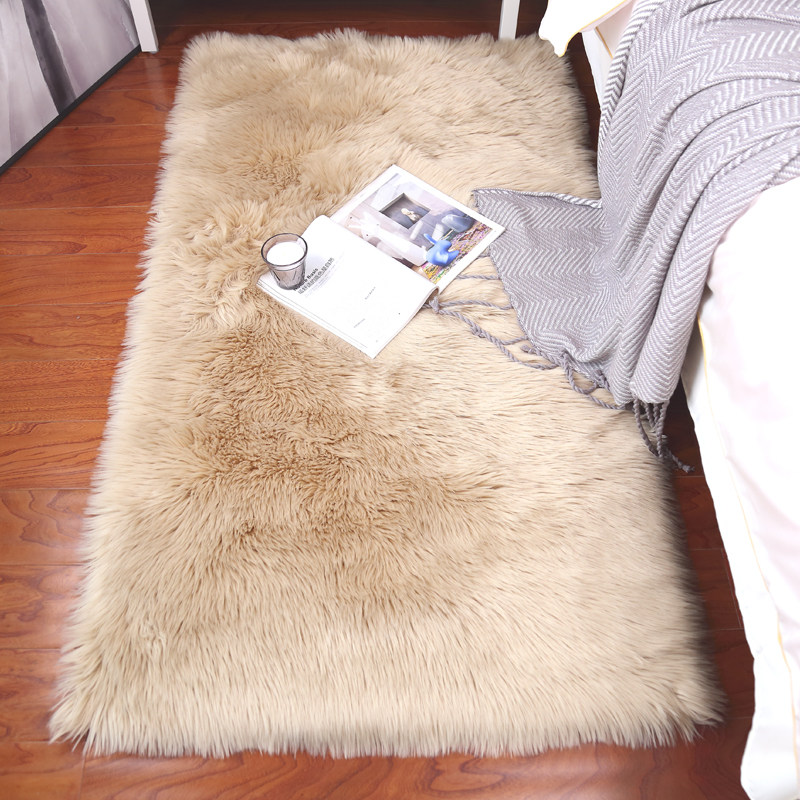 地毯卧室仿羊毛床边满铺毛毛加厚纯色现代简约床前毯长毛绒可定制