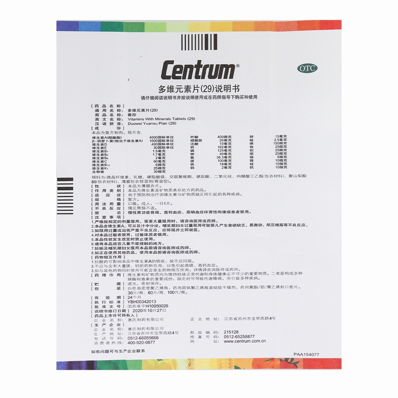 【善存】多维元素片(29)30片*1瓶/盒补充维生素