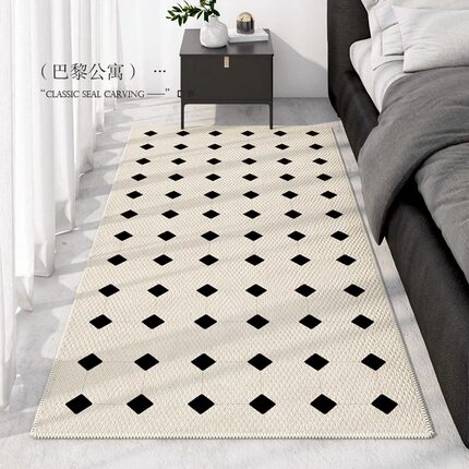 地毯黑白格床边卧室长条美式ins复古高级感编织房间装饰床尾地垫