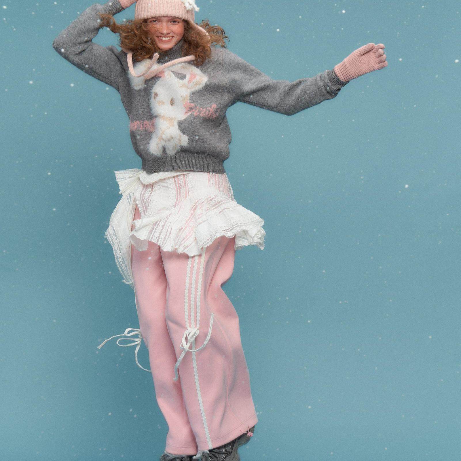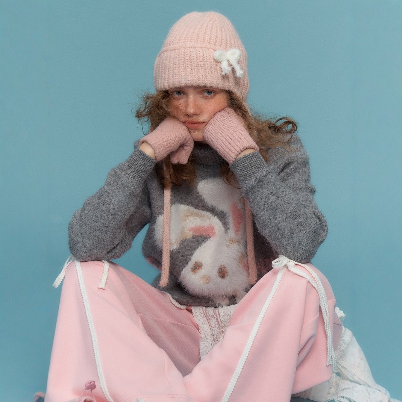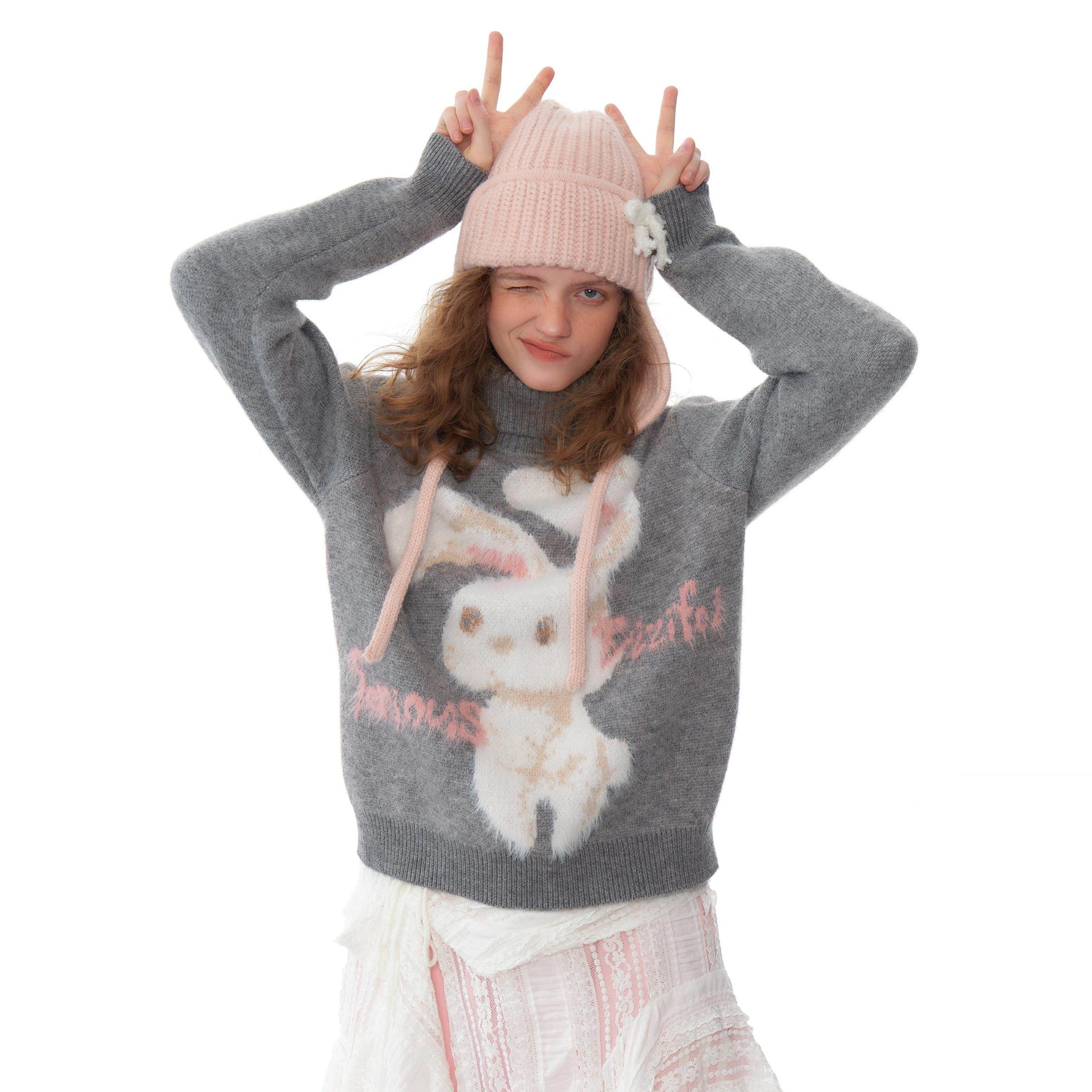 ziziFei秋冬美式复古设计高级感毛绒兔子软糯慵懒灰色高领毛衣女