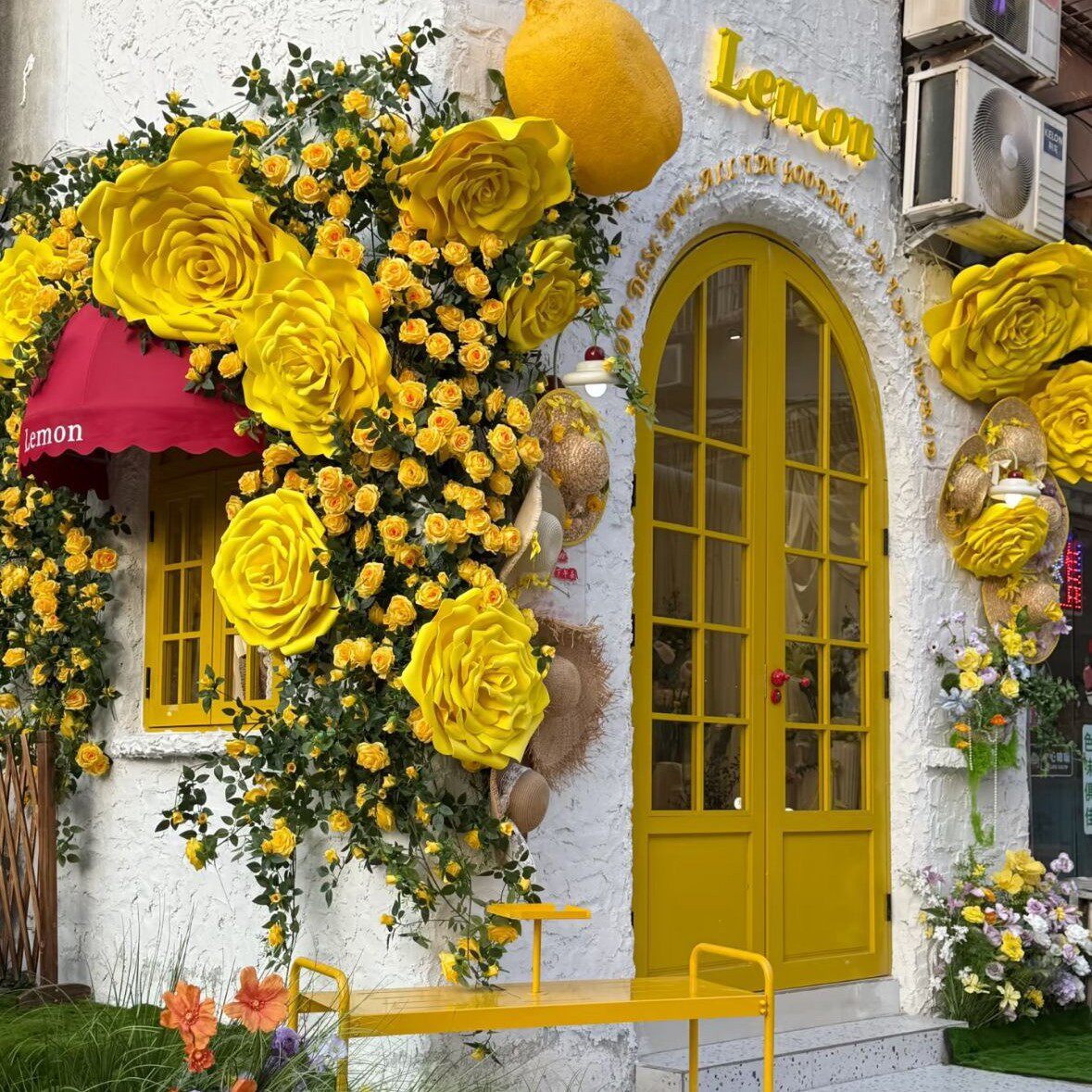网红黄玫瑰花墙仿真花藤餐民宿橱窗门头造景装饰花艺黄亦玫大玫瑰