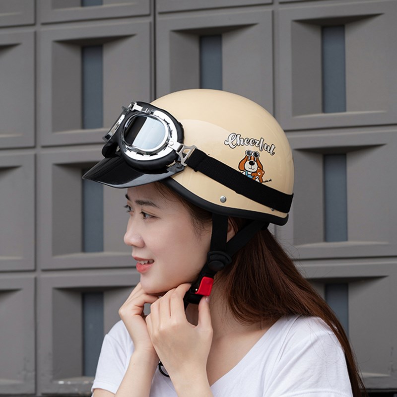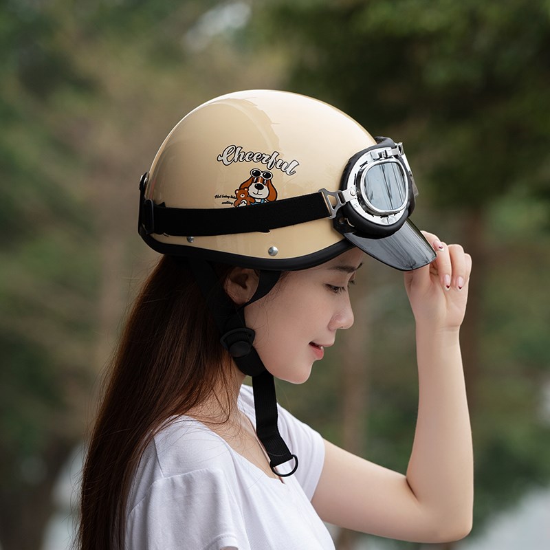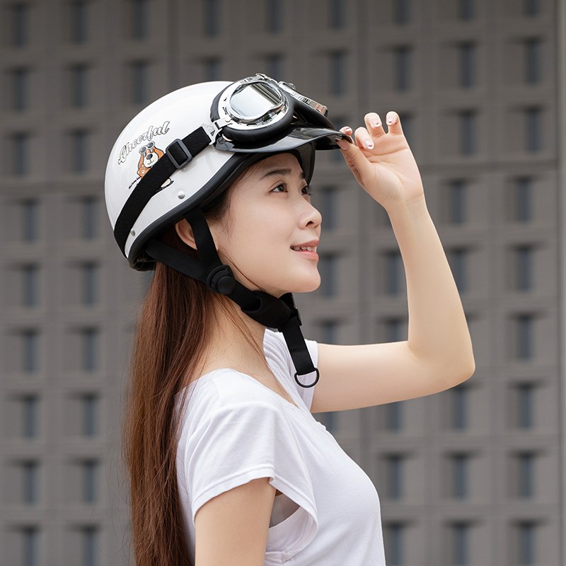 复古3C认证电动摩托车头盔可爱哈雷骑行安全帽四季通用防摔半盔