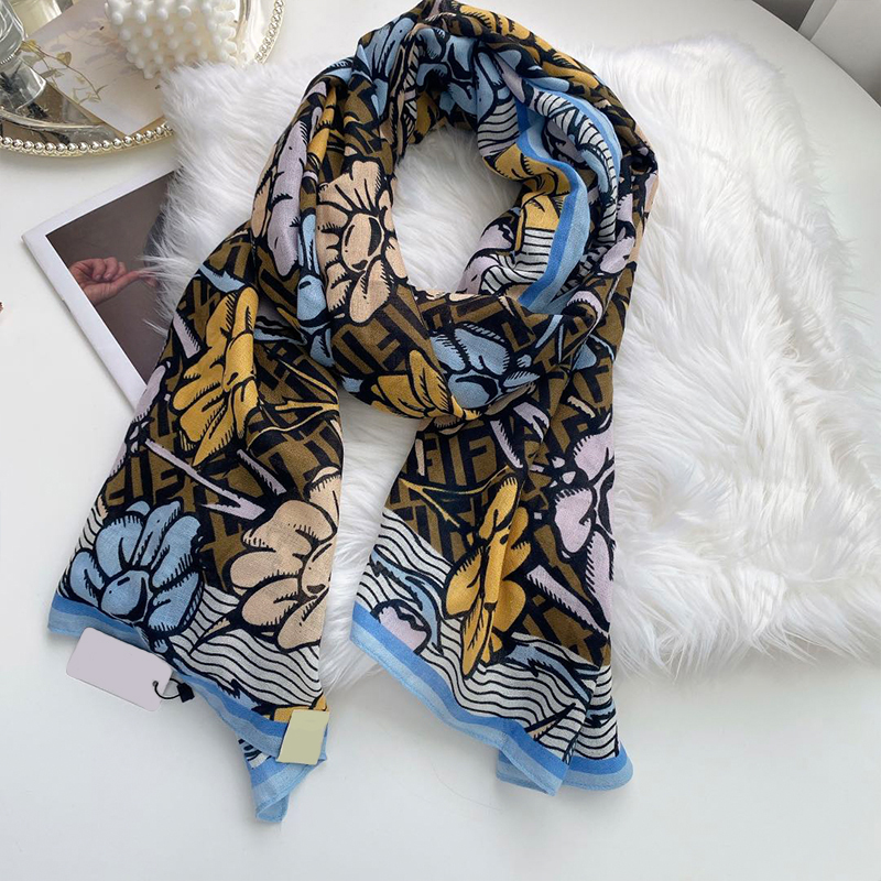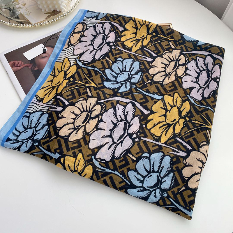 春秋季韩版撞色印花棉麻保暖围巾
