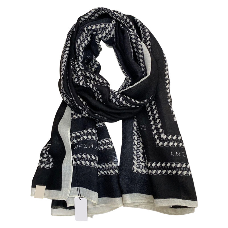 围巾女春秋季韩版百搭撞色链条印花大披肩棉麻长丝巾冬季保暖围脖