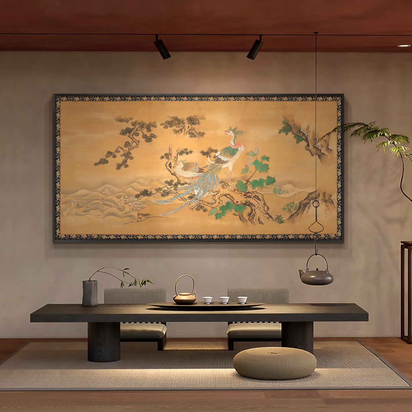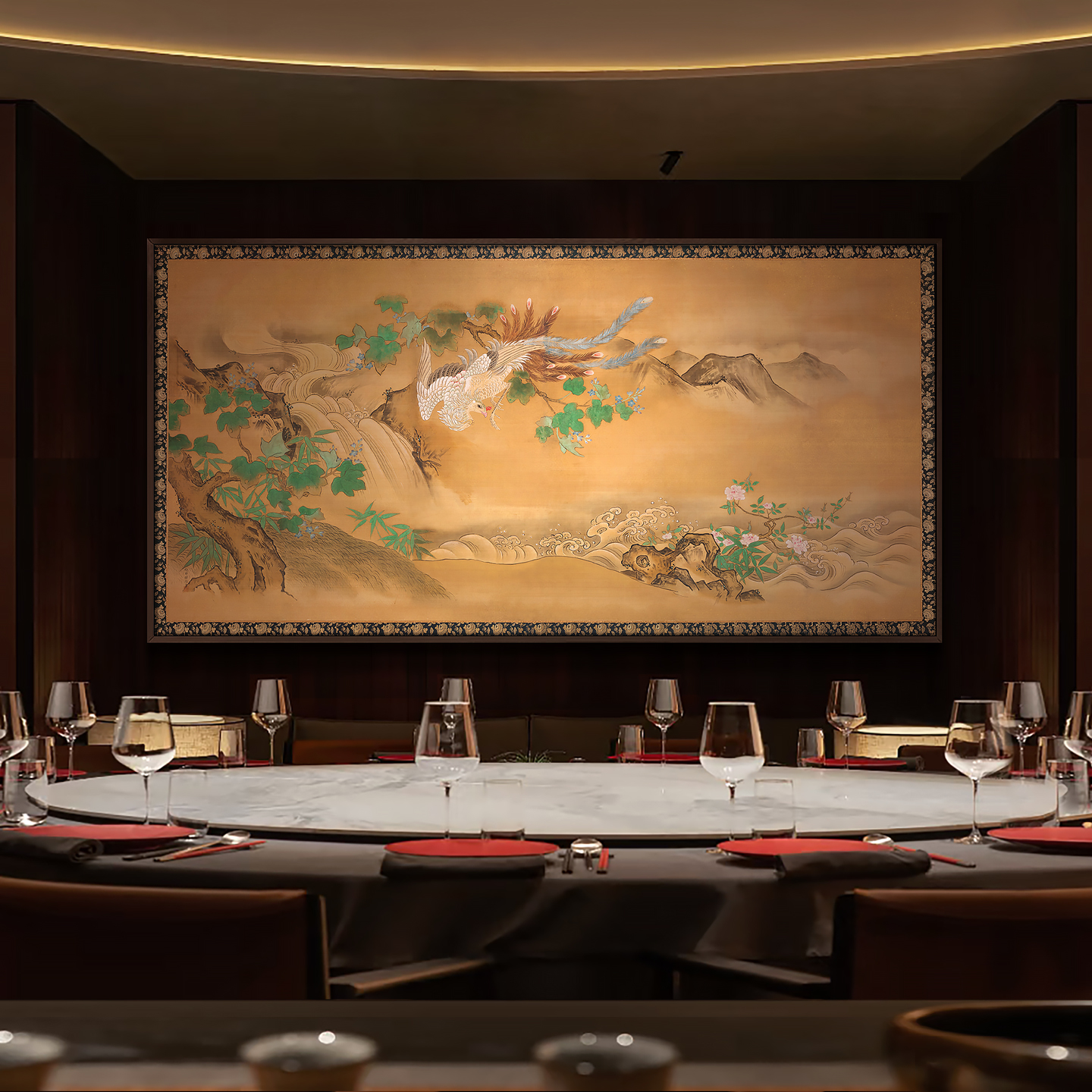 新中式客厅有凤来仪艺术家挂画酒店别墅餐厅包厢背景墙装饰画壁画