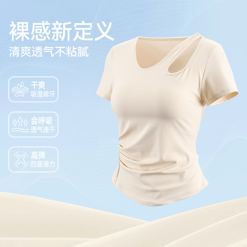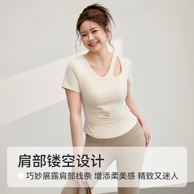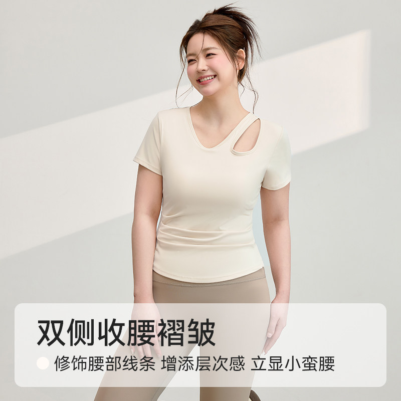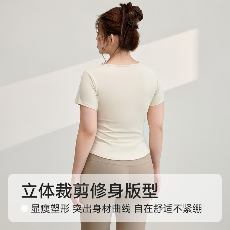 带胸垫大码瑜伽服短袖女紧身跑步速干运动T恤胖mm修身显瘦健身服
