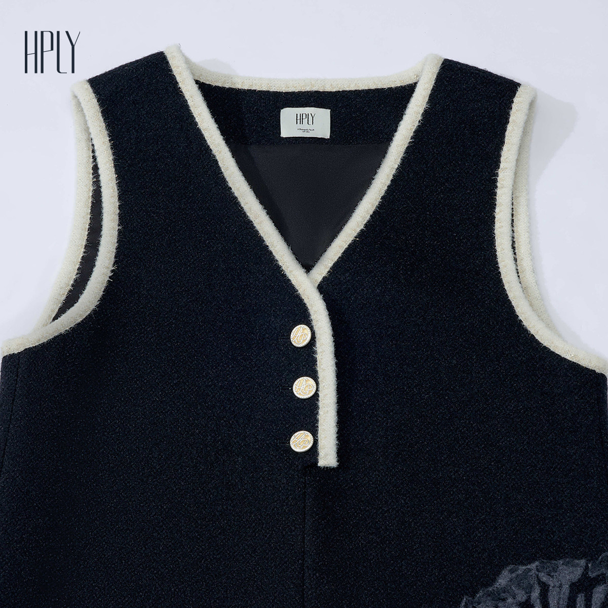 【商场同款】HPLY荷比俪冬季新款女羊毛无袖马甲背心连衣裙