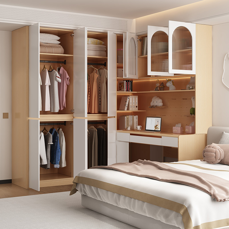 圆弧设计衣柜书桌一体
