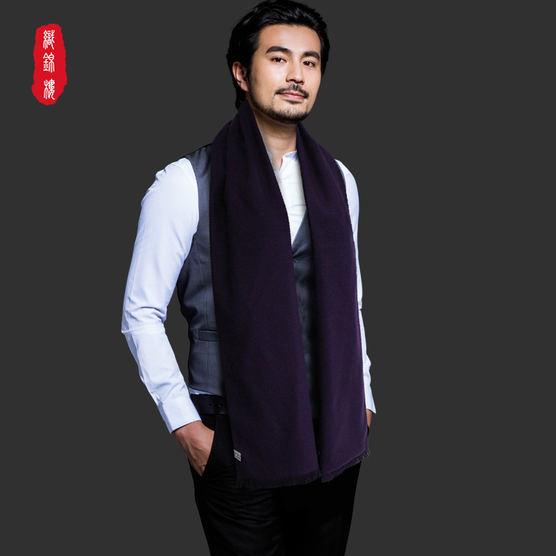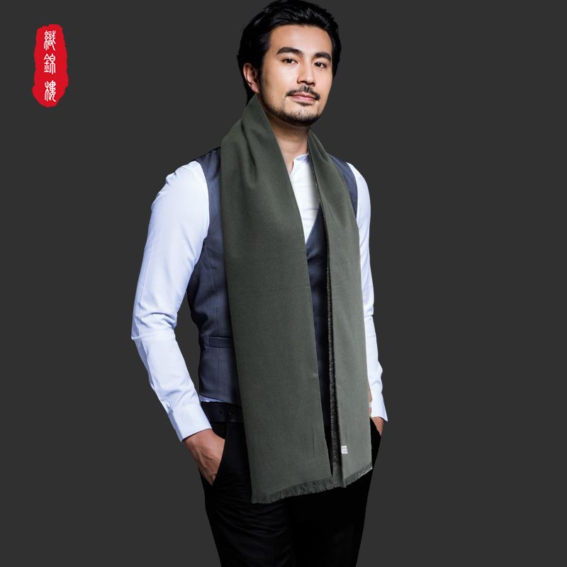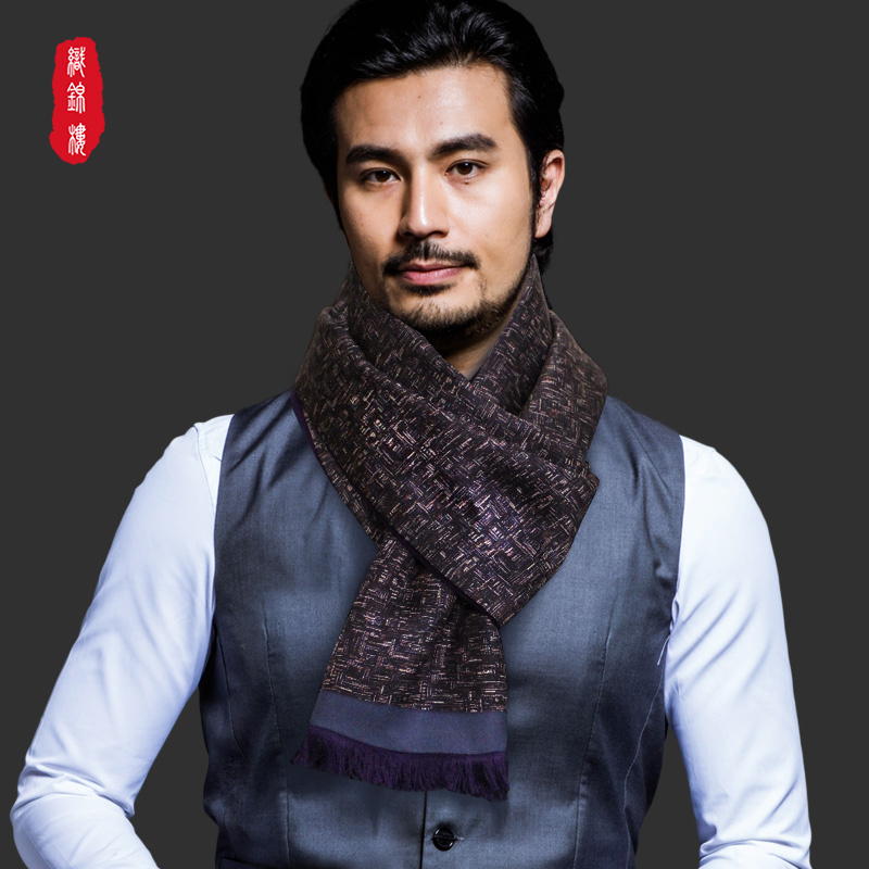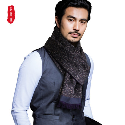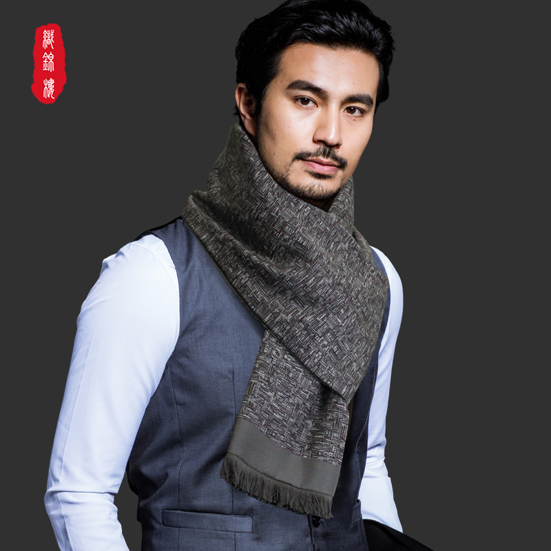 织锦楼冬季男士围巾英伦风桑蚕丝真丝保暖男装围脖商务礼物丝巾