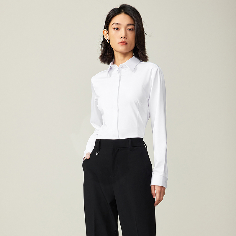 HLA/海澜之家商务保暖衬衫25秋冬新款修身内里磨毛衬衣女装