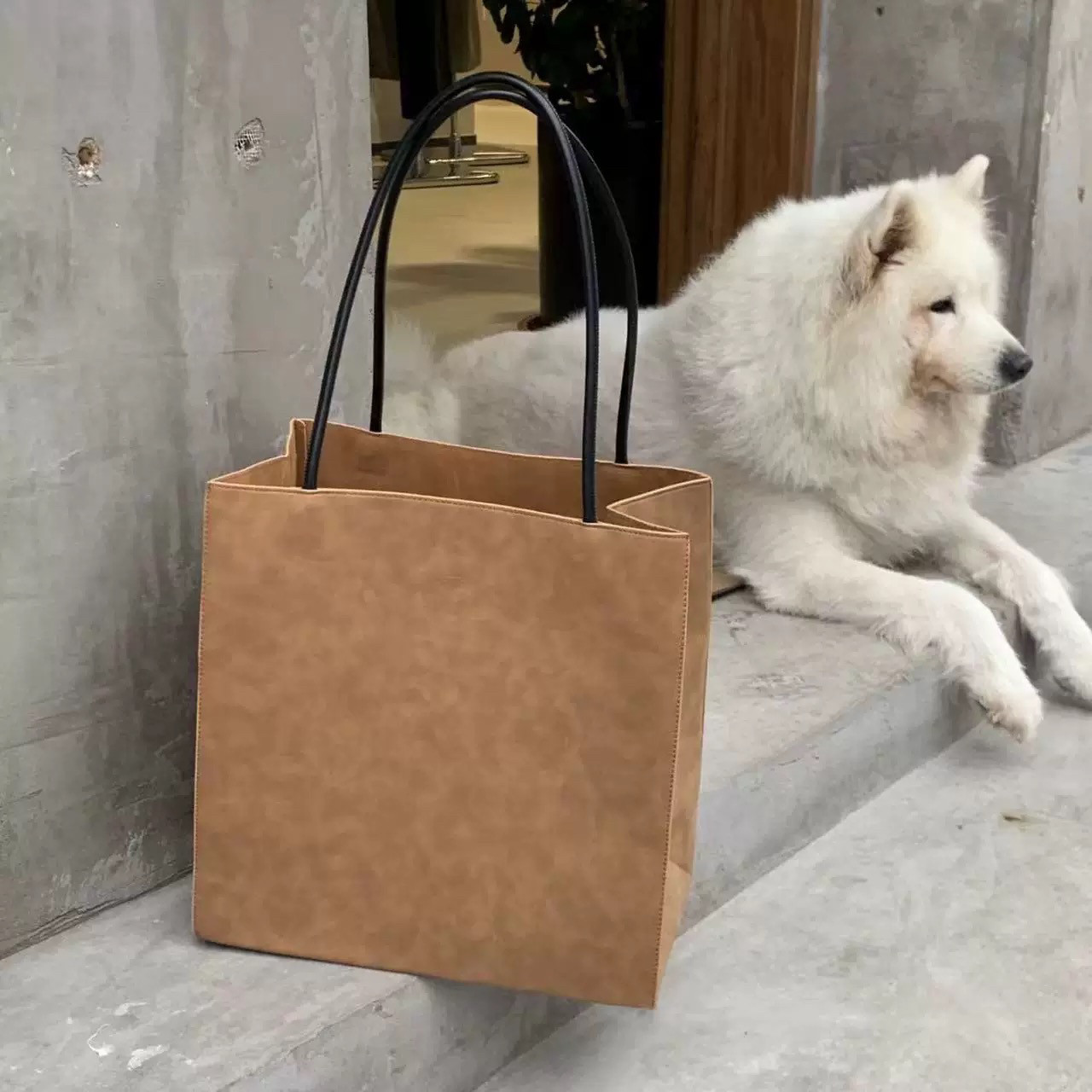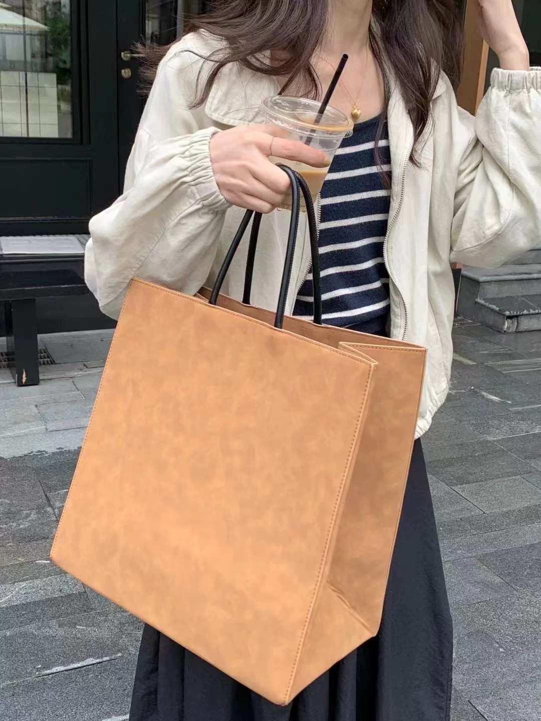 高级大容量磨砂购物袋包包简约小众设计手提托特包像纸袋的包女