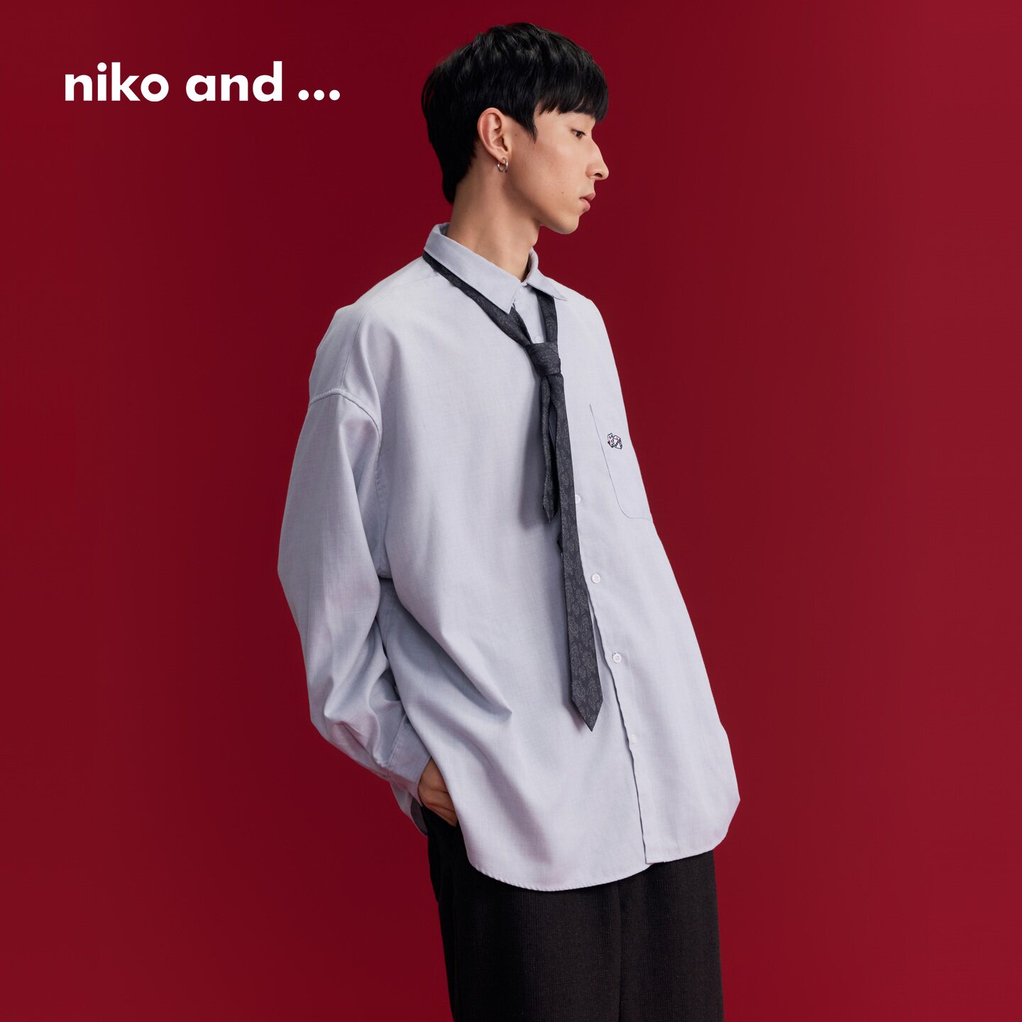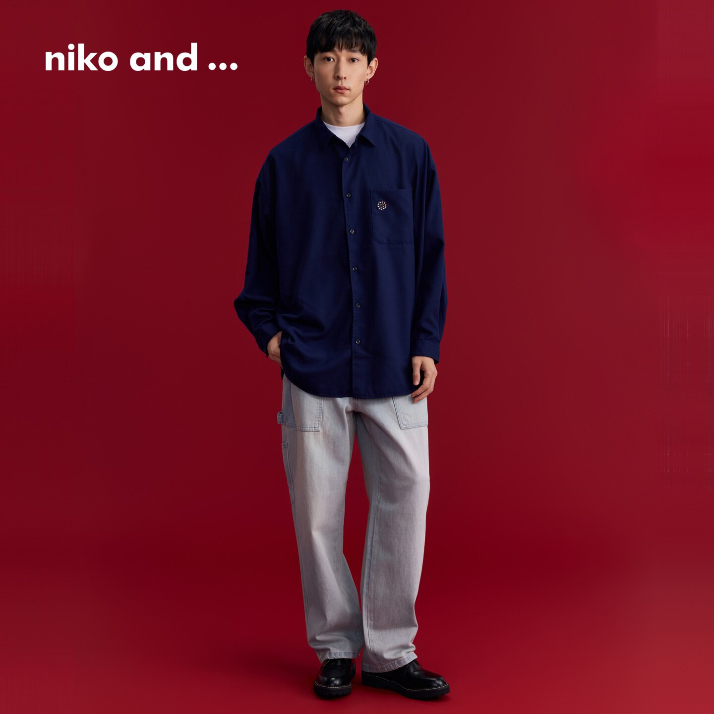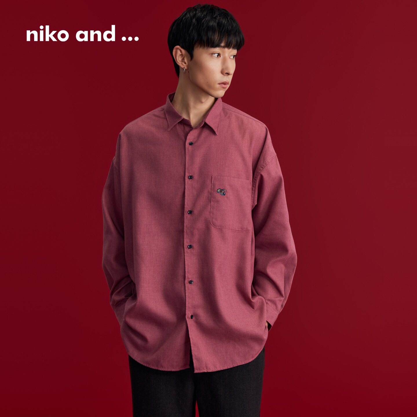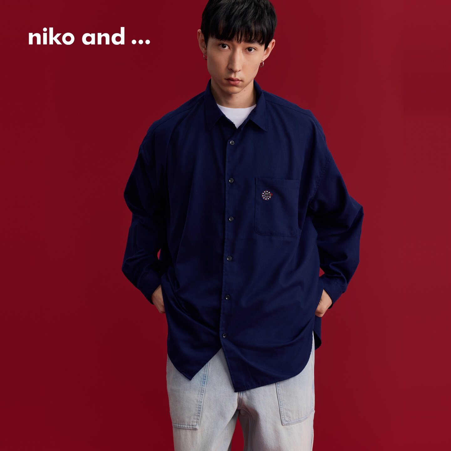 niko and ...衬衫男2026春季新款休闲刺绣清爽宽松长袖上衣592395
