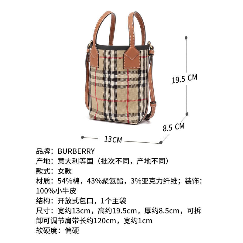 BURBERRY博柏利 女士女包托特包水桶包手提单肩包迷你款 8070461