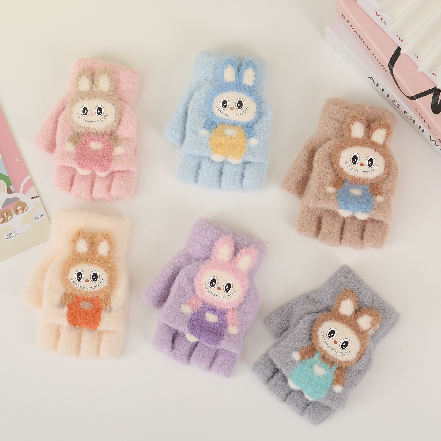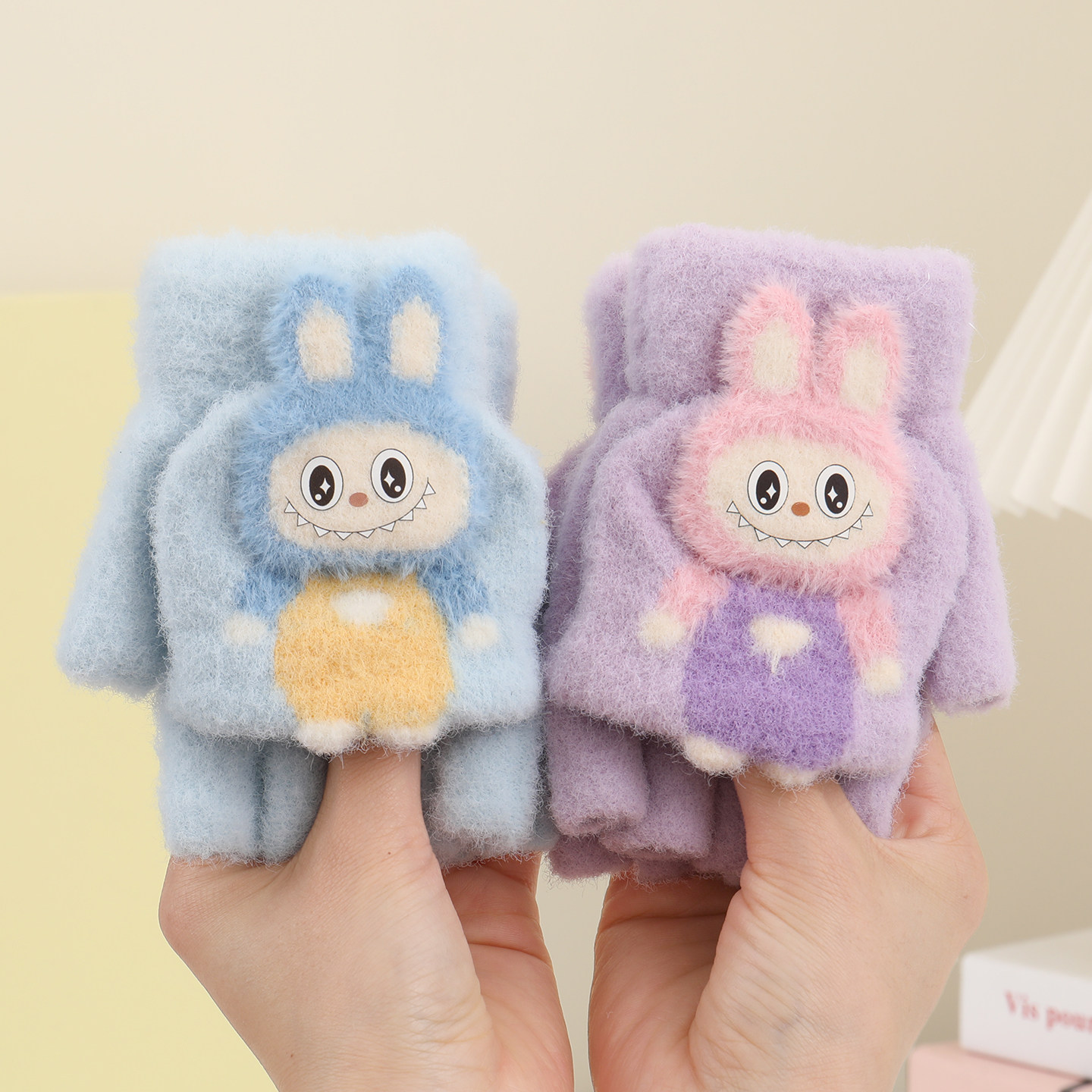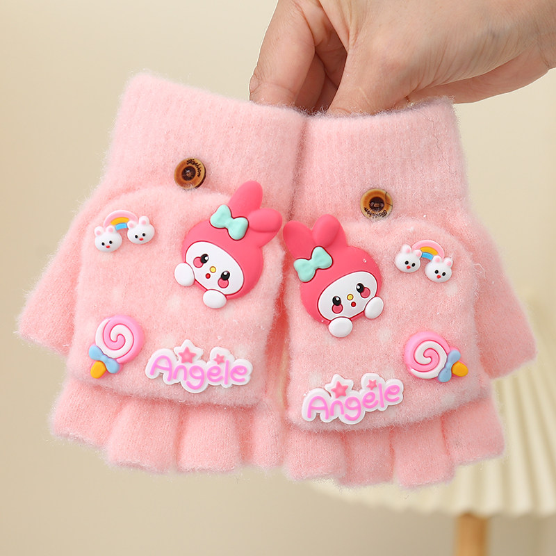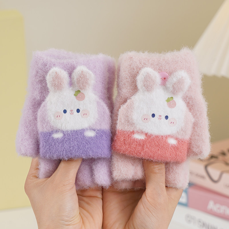 儿童柔软保暖手套女童6-12岁上学专用半指可写字卡通可爱兔子毛绒