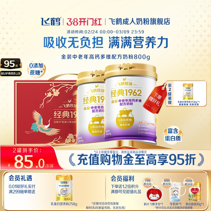 【38开门红】飞鹤经典1962金装中老年成人高钙多维奶粉送礼营养品