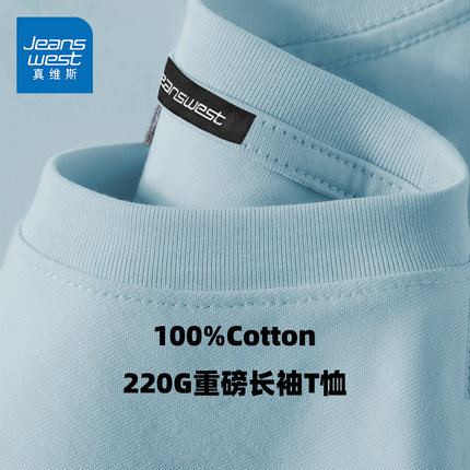 GV真维斯重磅纯棉长袖t恤男夏季浅蓝色圆领卫衣青少年内搭打底衫D