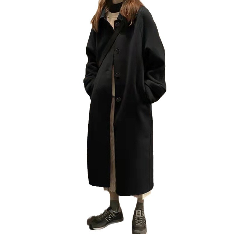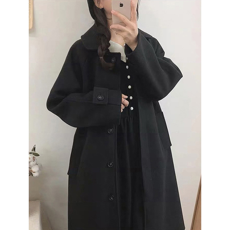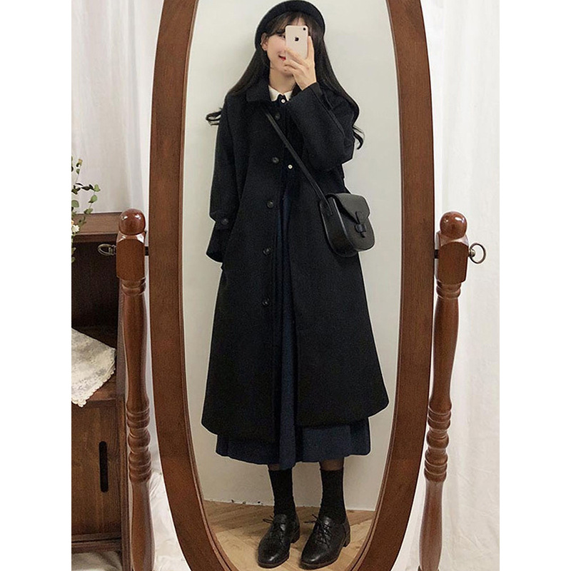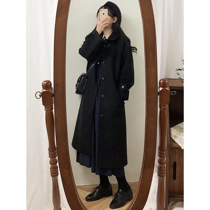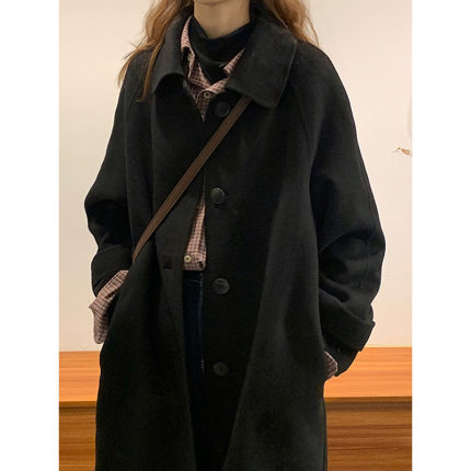 2025秋冬季韩系高级感赫本风呢子大衣女中长款黑色毛呢外套小个子