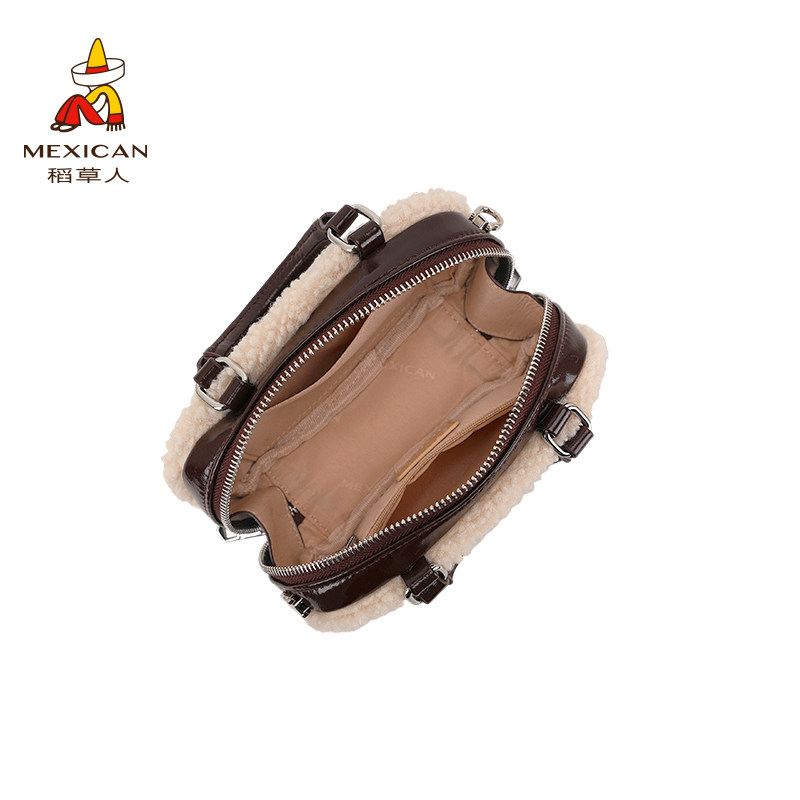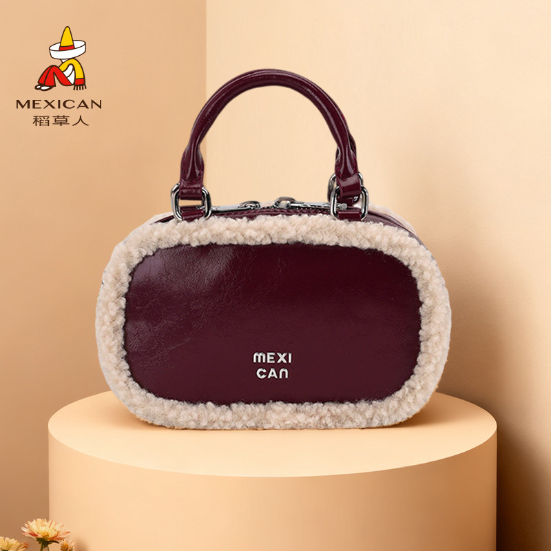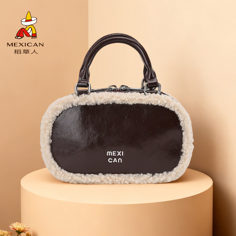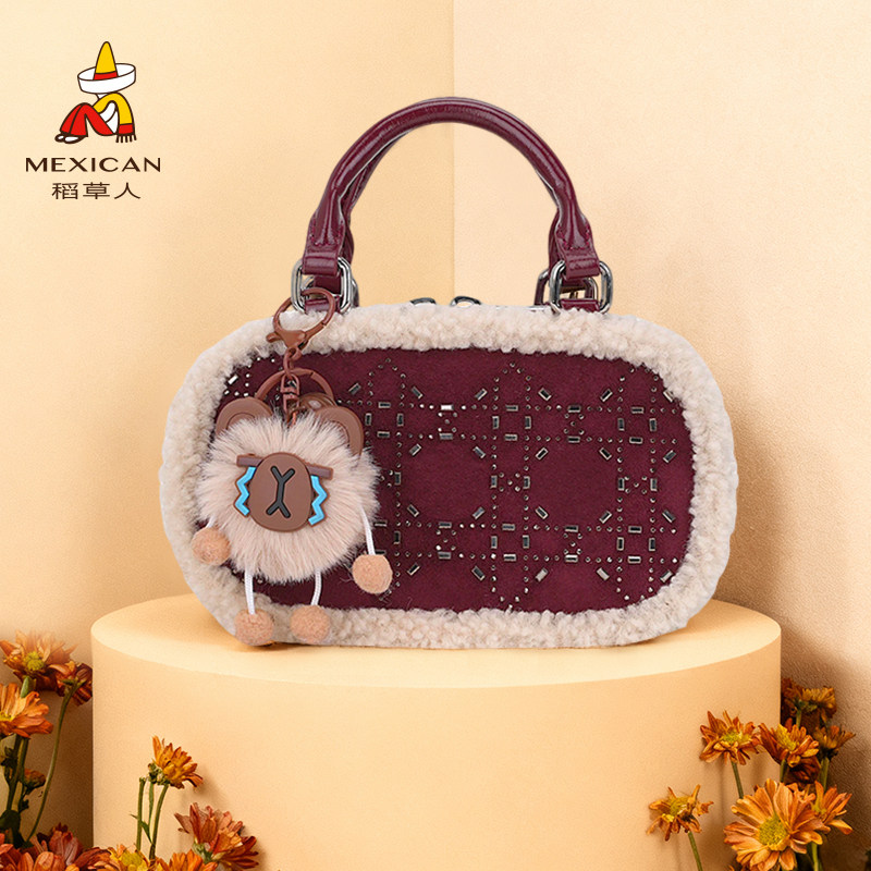 稻草人包包2025冬季新款波士顿包小巧手提斜挎包毛绒精致女士小包