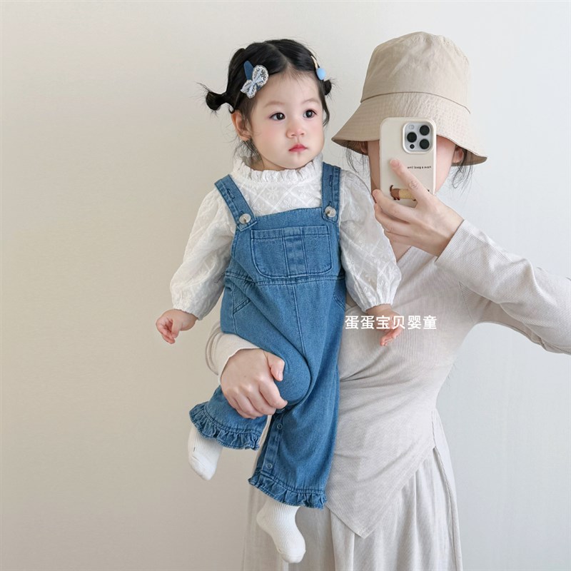 女宝宝春装套装牛仔背带裤两件套洋气超萌婴幼儿一岁外出小童春季