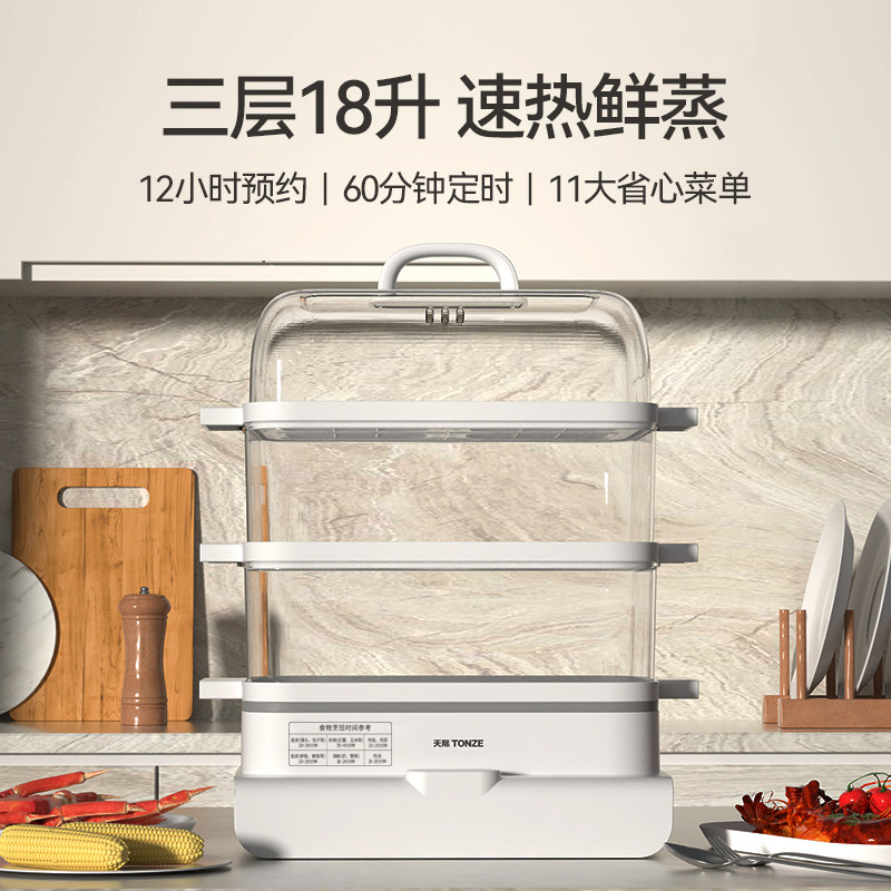 天际电蒸锅多功能家用大容量三层小型电蒸汽箱早餐蒸菜神器电蒸笼