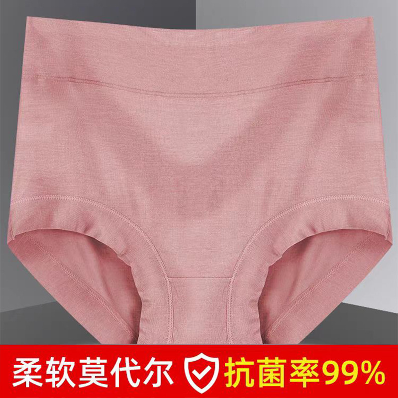 4条女士莫代尔内裤高腰透气抗菌大码舒适胖妈妈款中年三角短裤头