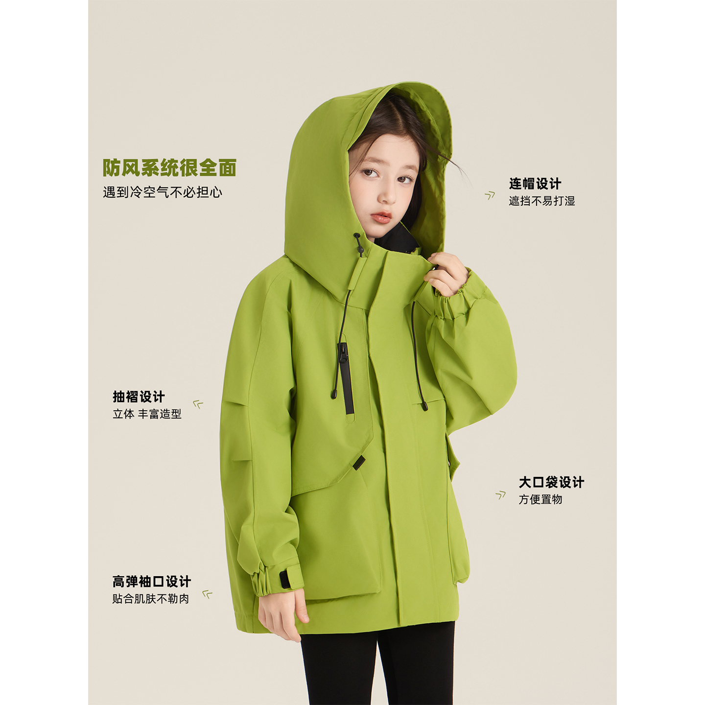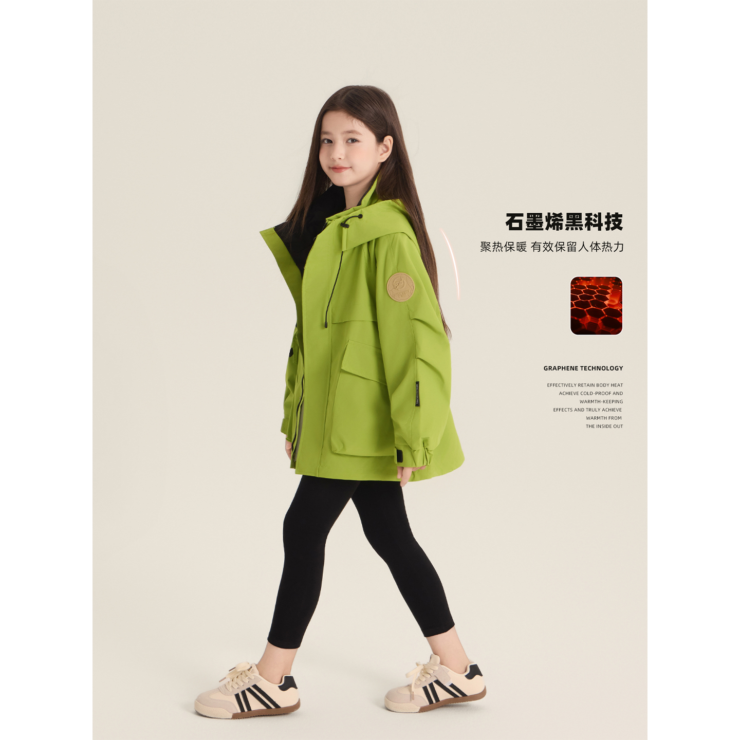 Amybaby女童外套秋季2025新款儿童冲锋衣森系户外三防夹克薄款