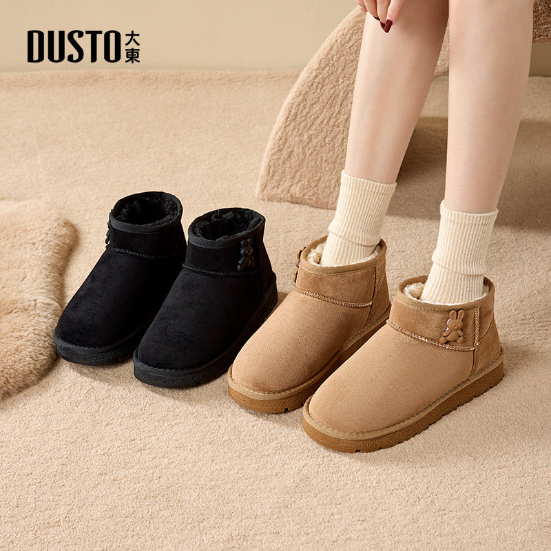 大东女鞋雪地靴2025冬季新款加绒保暖平底女棉靴东北抗寒女短靴子