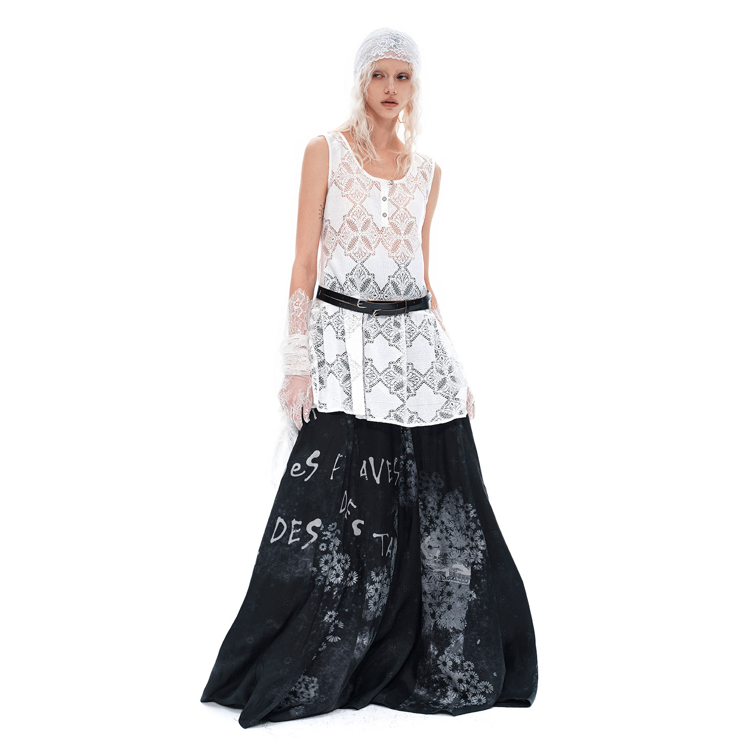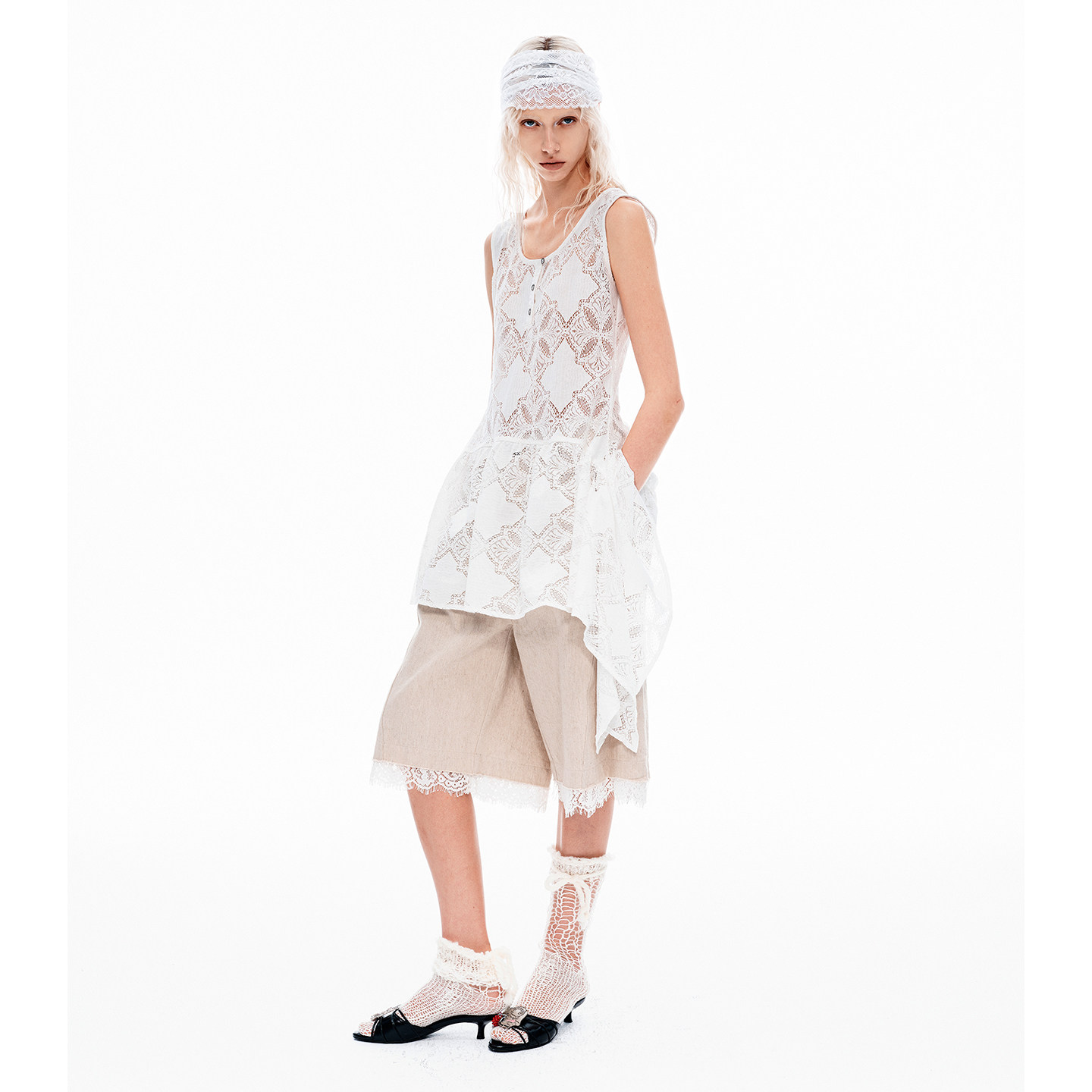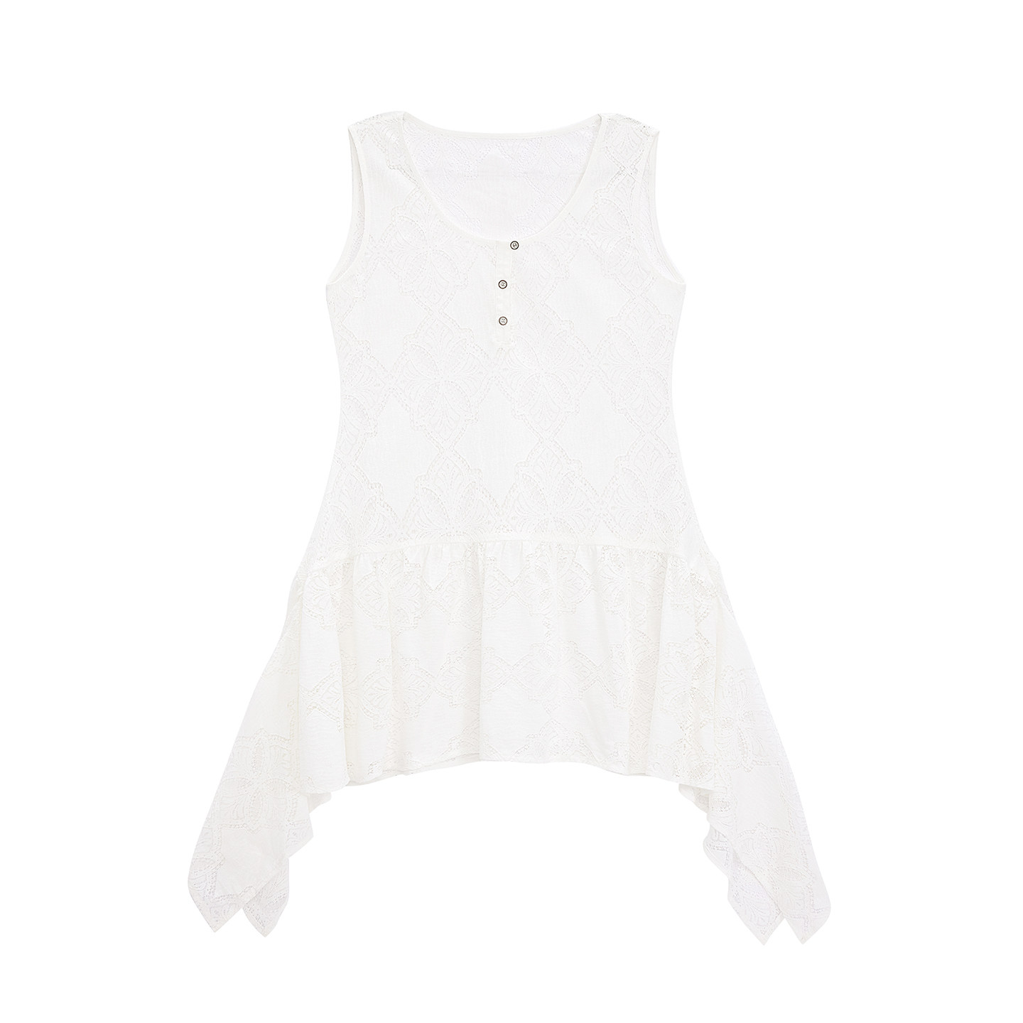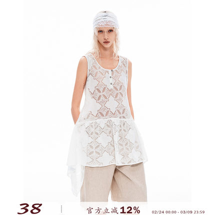 VINZOO - 层次感不规则下摆复古镂空蕾丝亨利领背心裙上衣女初秋