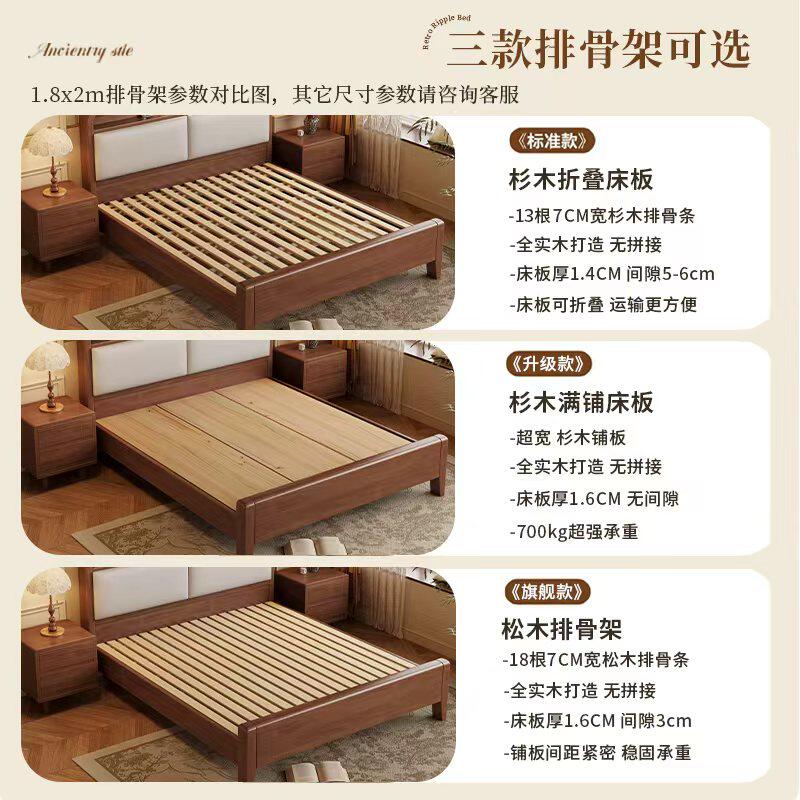 馨佰利实木软靠床家用卧室小户型中古风家具1米5床主卧双人床婚床