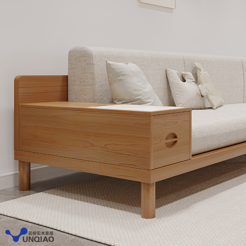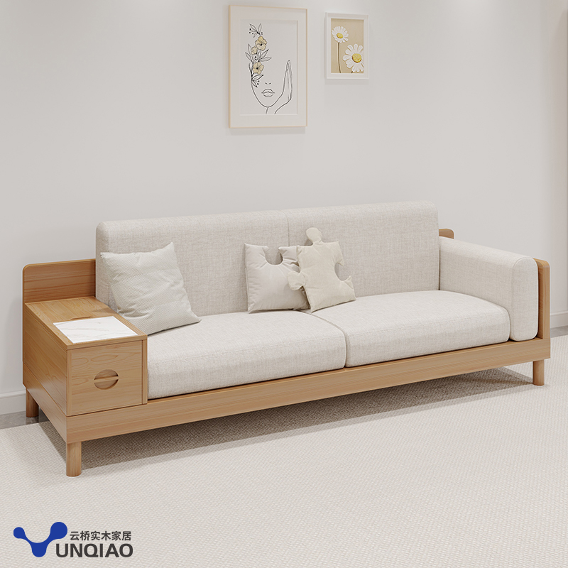 北欧风客厅纯实木沙发简约现代小户型三人位布艺沙发贵妃转角沙发