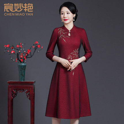 宸妙艳手工钉珠气质礼服连衣裙