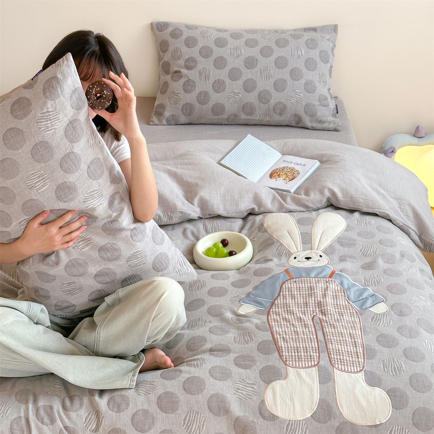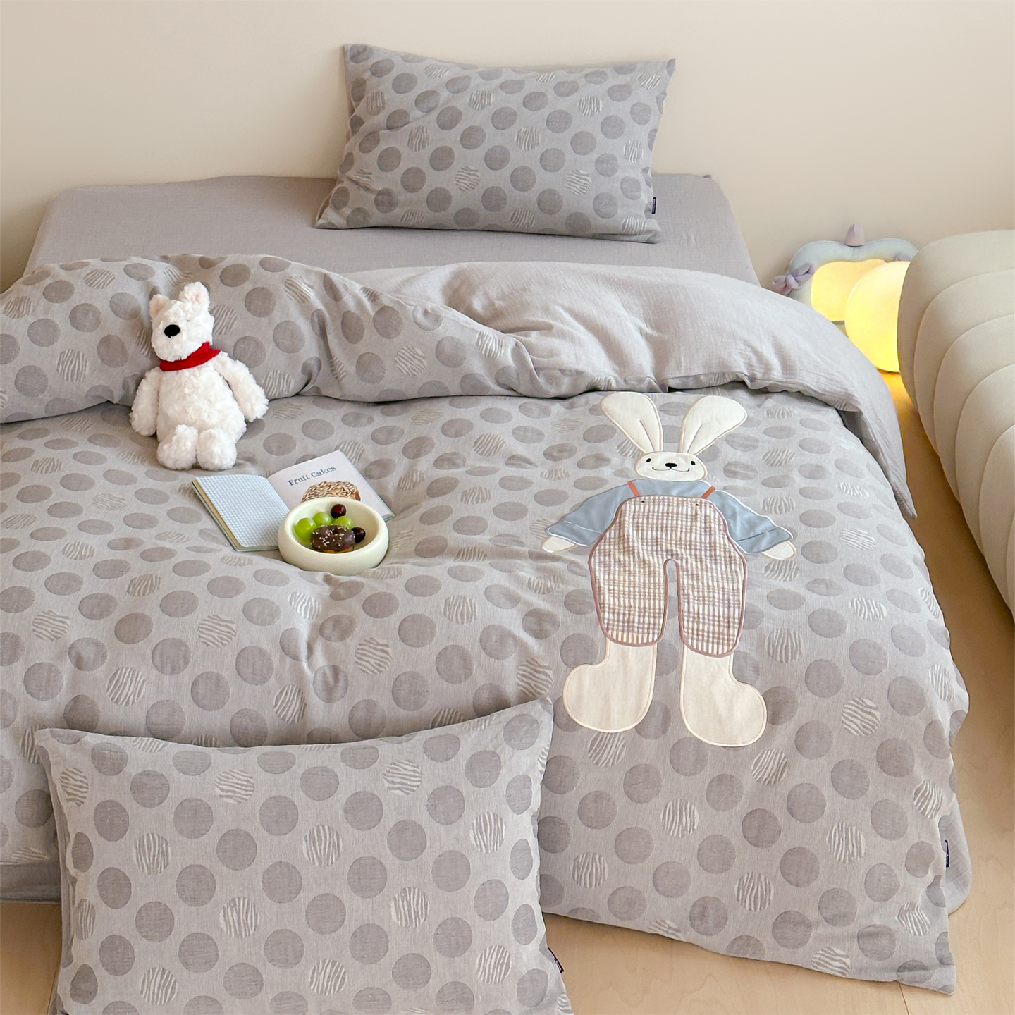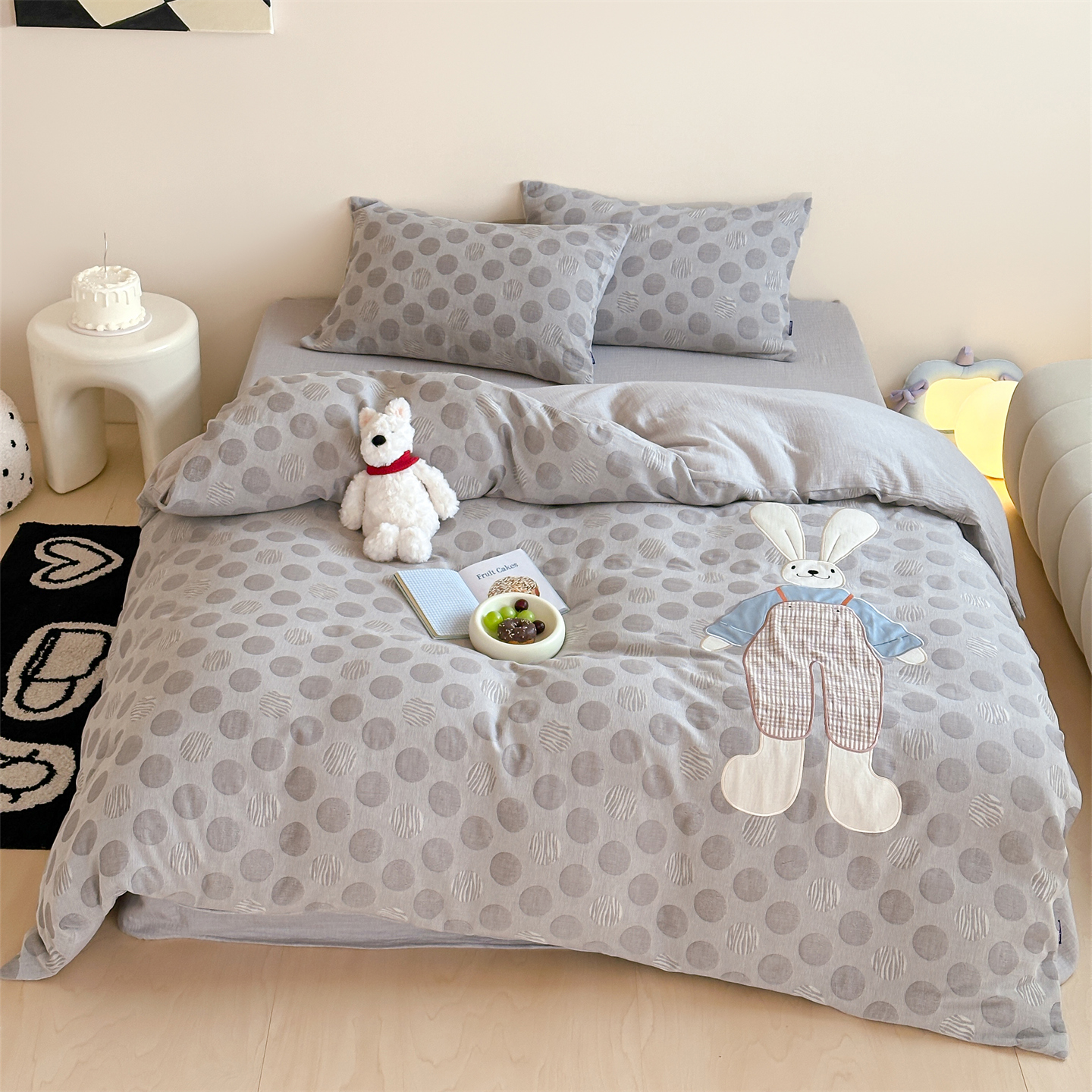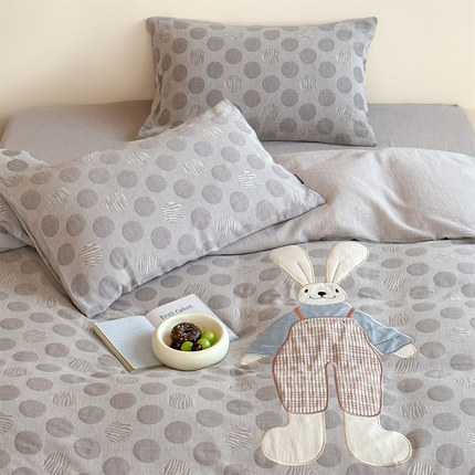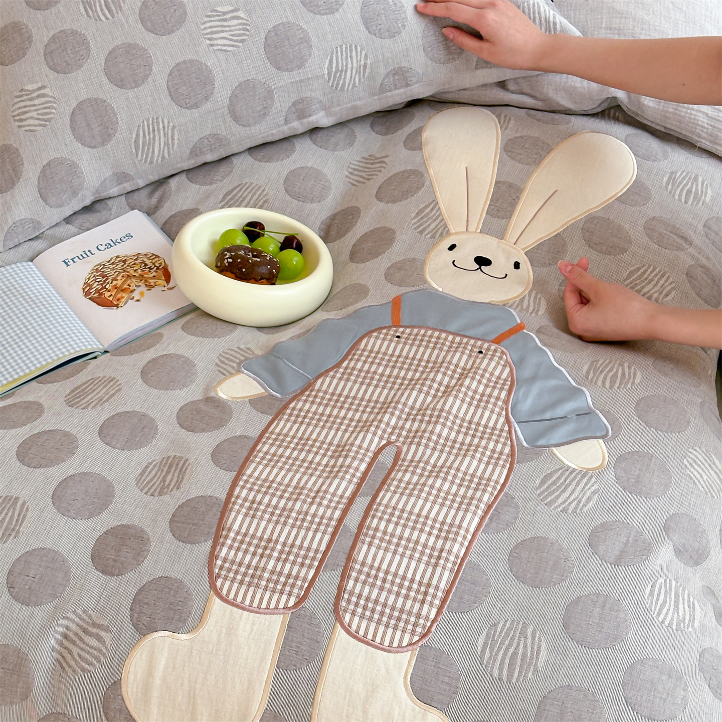 森系日式卡通色织双层纱四件套 |纯棉柔软小兔贴布绣棉纱儿童床品