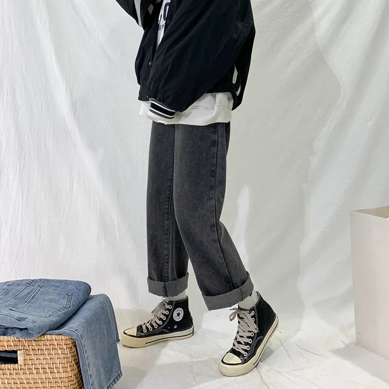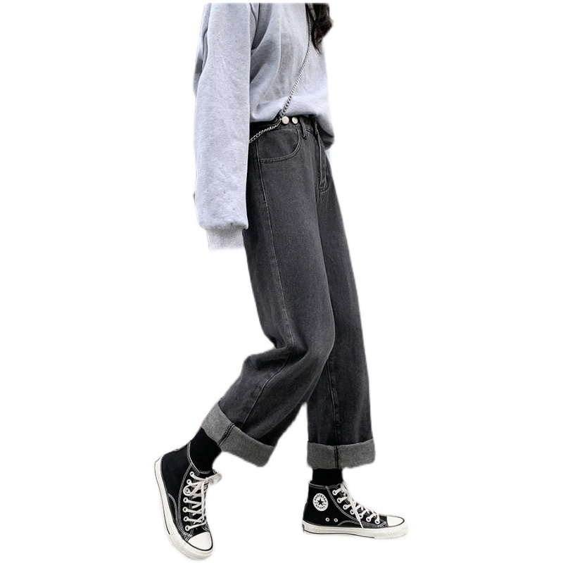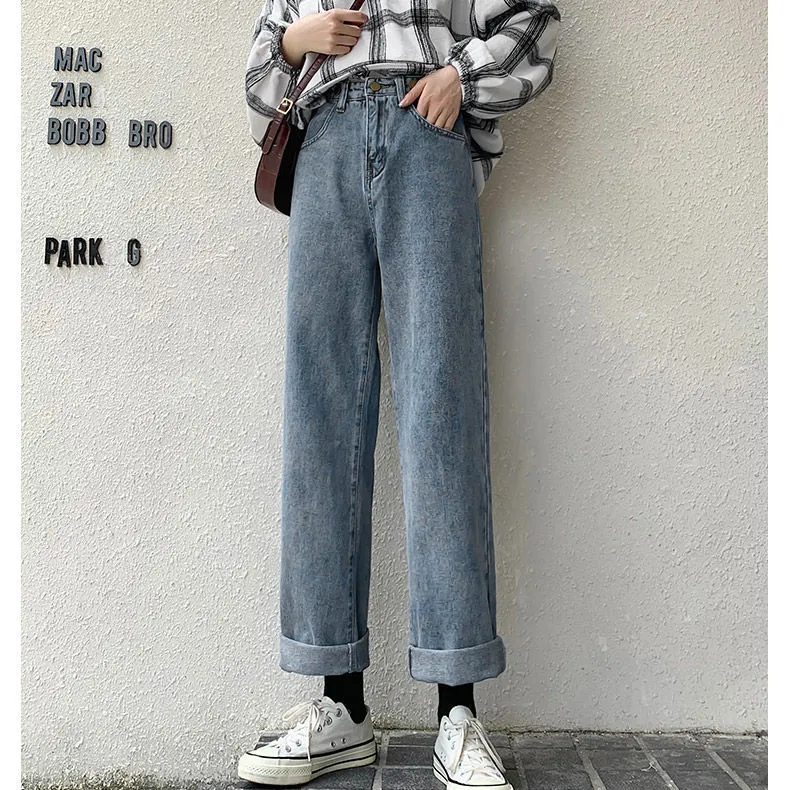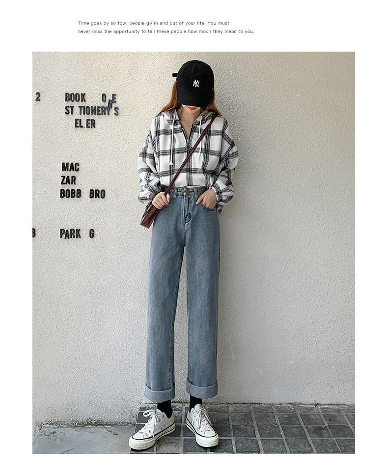 大码女装胖mm高腰直筒阔腿牛仔裤