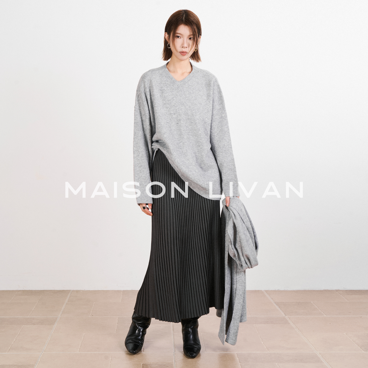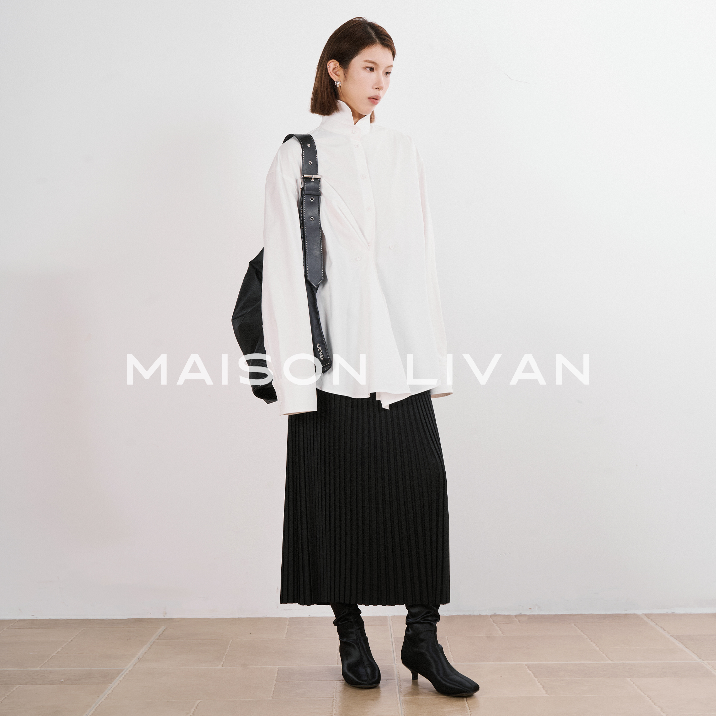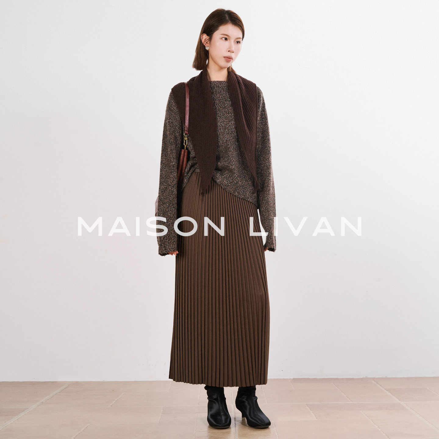 MaisonLivan 灵动高级感百褶半身裙女25秋季静奢风简约直筒长裙子