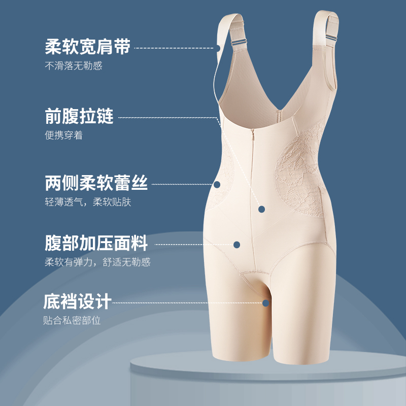 婷美收腹收腰拉链无袖连体塑身衣女舒适显瘦提臀束身美体塑形内衣