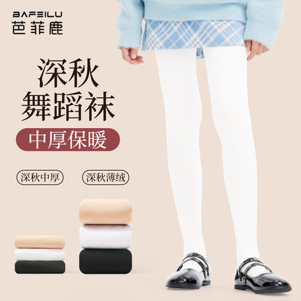 儿童舞蹈袜春秋款女孩白色跳舞练功打底袜丝袜秋季薄绒女童连裤袜