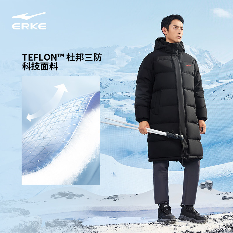 中国丨鸿星尔克四防长款羽绒服男冬季新款男士防水羽绒外套大衣