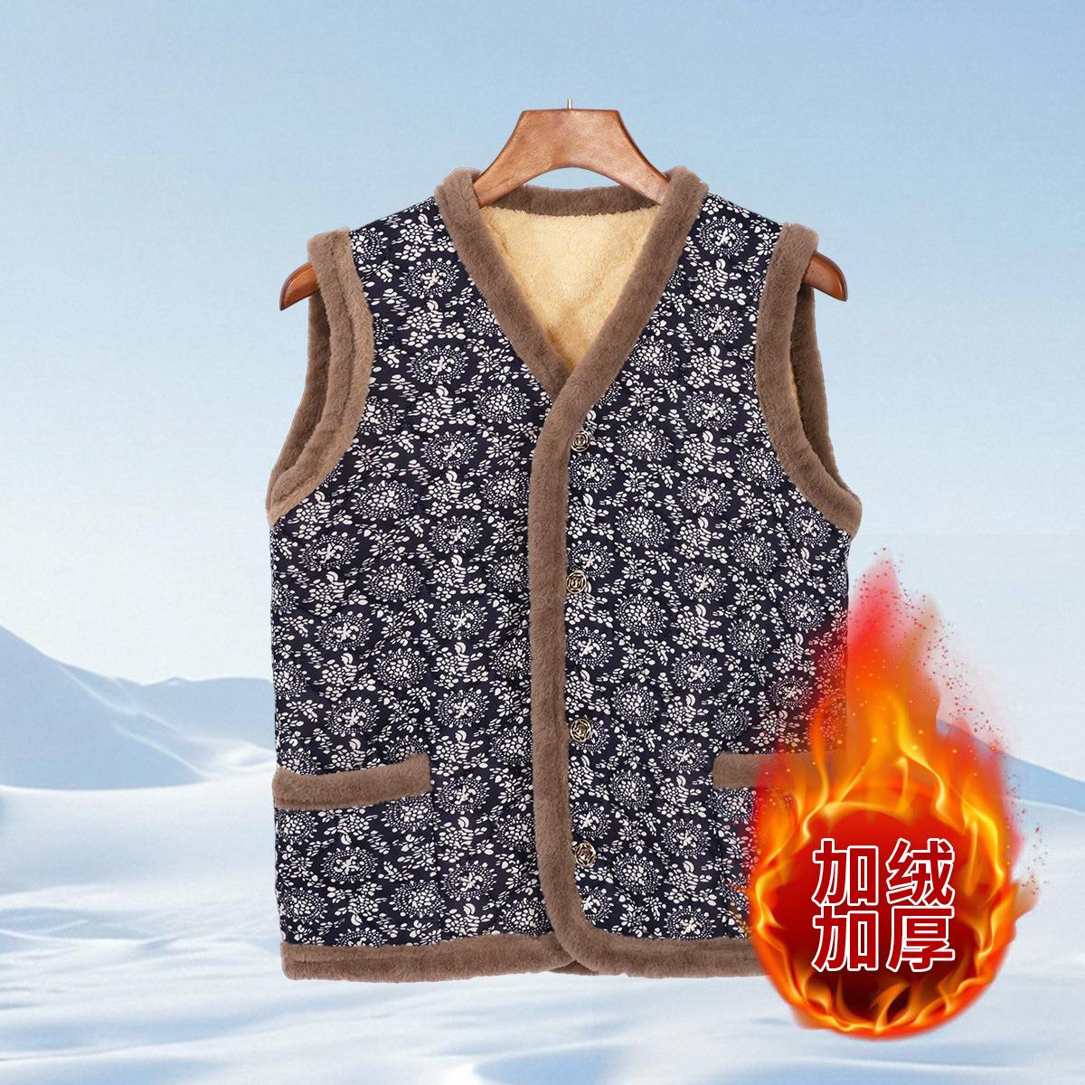 秋冬新款妈妈加绒马夹中老年人女碎花背心马甲棉衣加厚坎肩外套