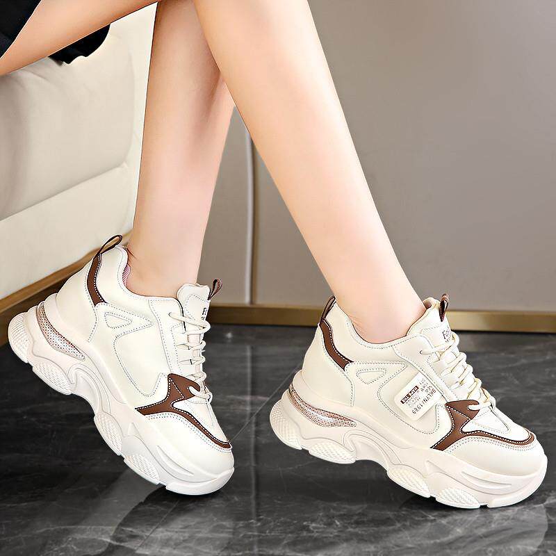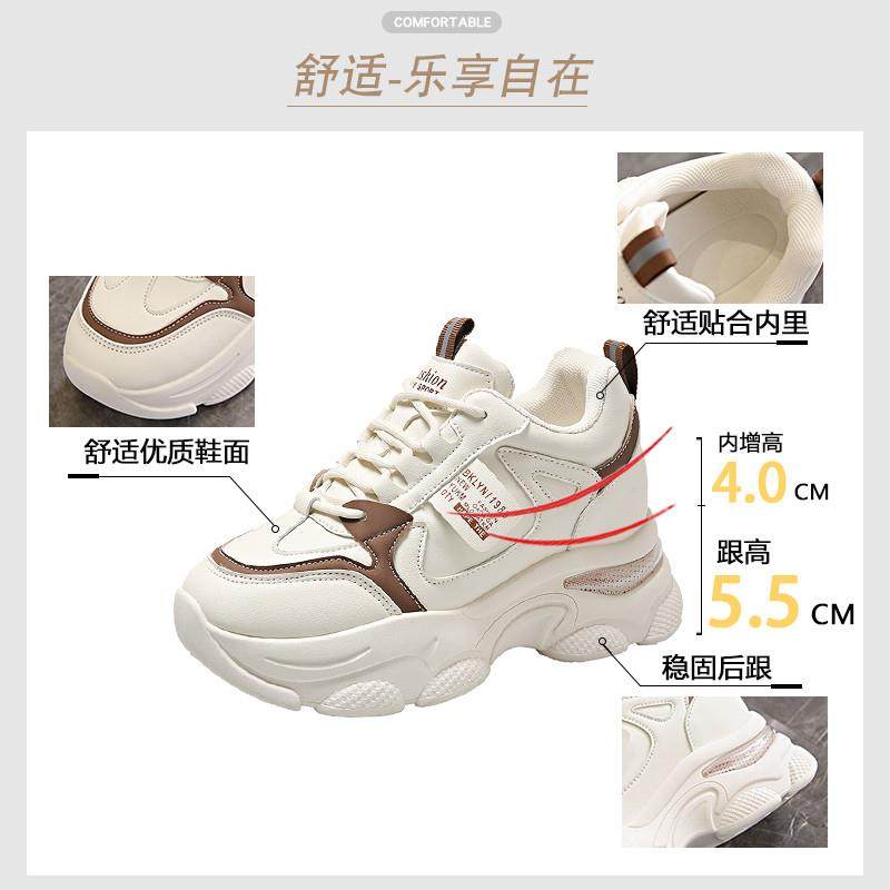 女鞋2024新款春秋季百搭小白真皮内增高莆田运动鞋厚底休闲老爹鞋