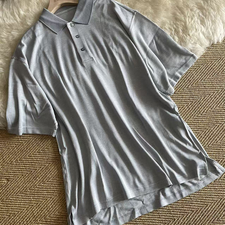 真丝白厂丝POLO衫短袖开叉商务
