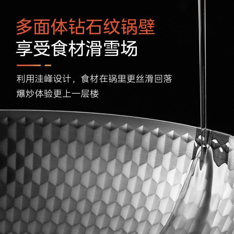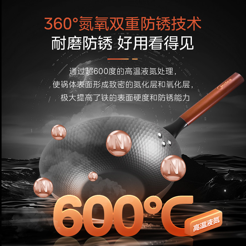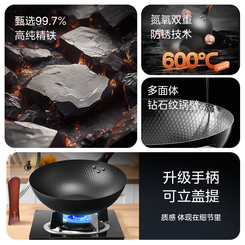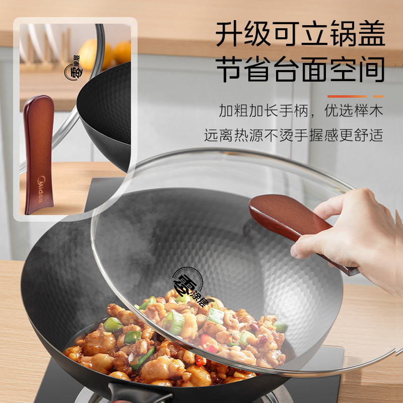 美的铁锅炒锅无涂层家用轻量化老式炒菜锅磁炉燃气通用不锈铁锅具