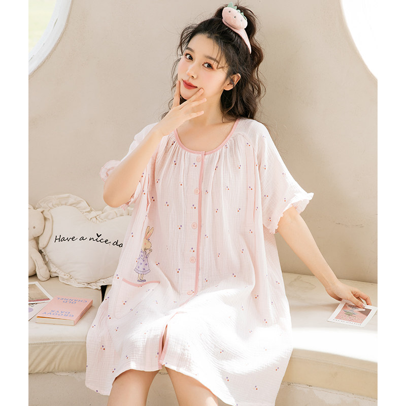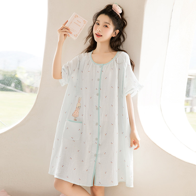 产妇医院待产裙夏季纱布哺乳睡裙