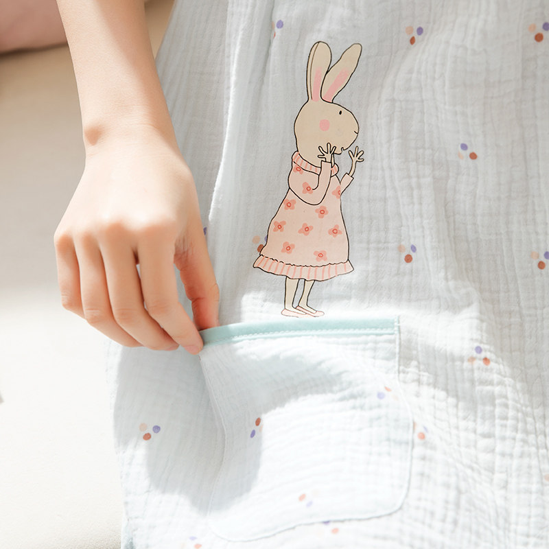 家时光产妇医院待产裙夏季纯棉纱布短袖哺乳睡裙孕妇月子服生产裙