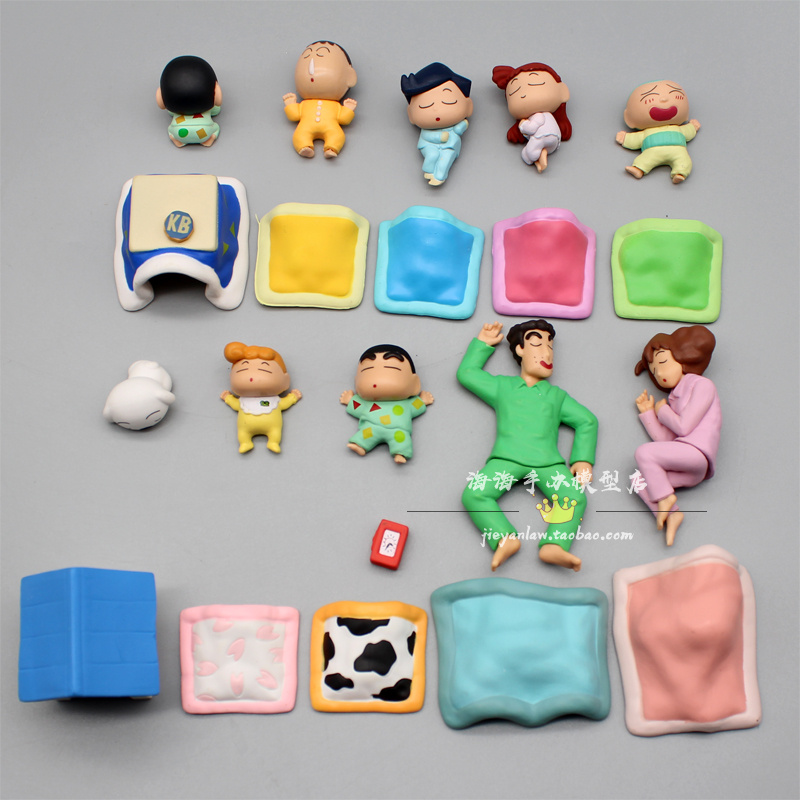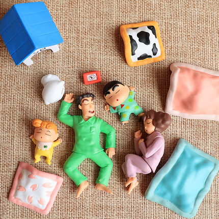 日单蜡笔小新手办盲盒睡眠中的野原一家小新微缩场景模型摆件礼物