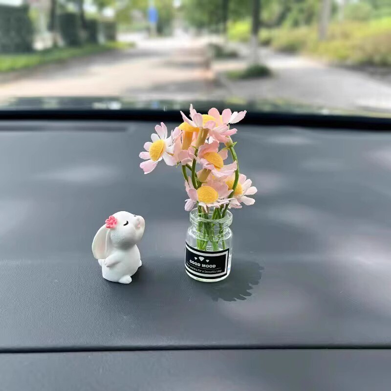 小兔新款茉莉花中控治愈饰品车载迷你花瓶摆件香水汽车内饰装饰品