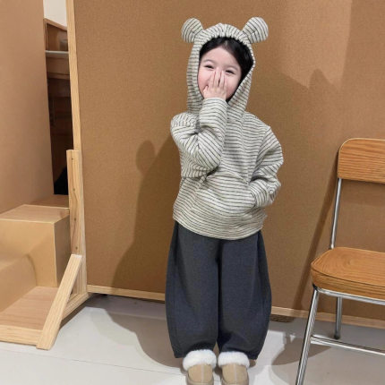 TOTObaby秋冬款男女童条纹连帽套头卫衣儿童可爱小熊耳朵加绒上衣