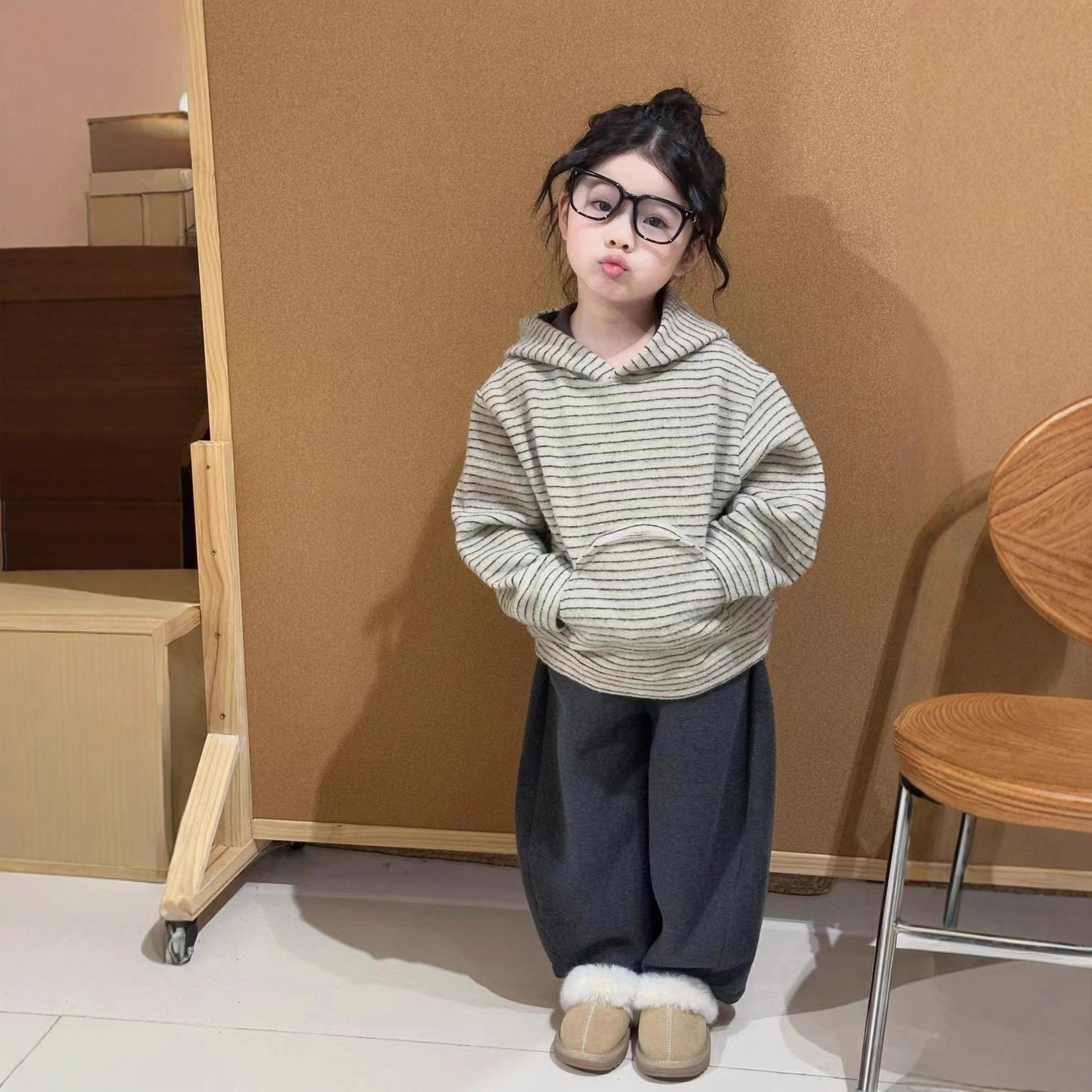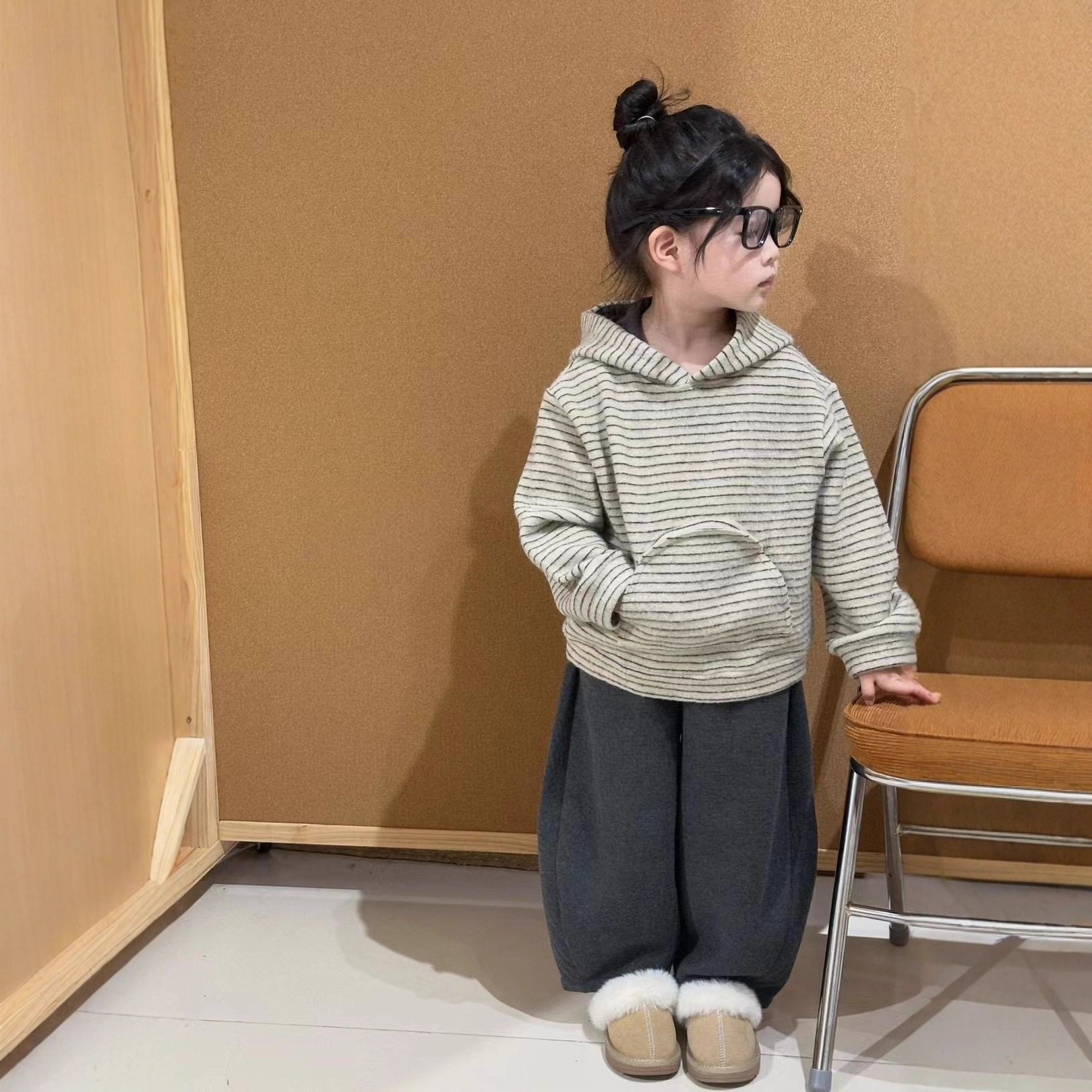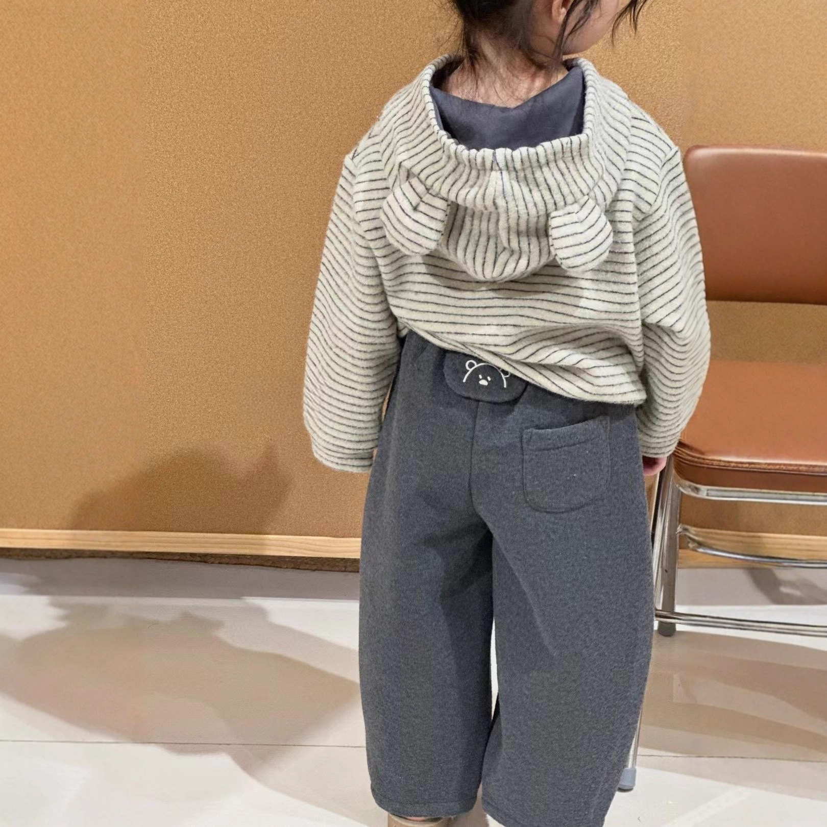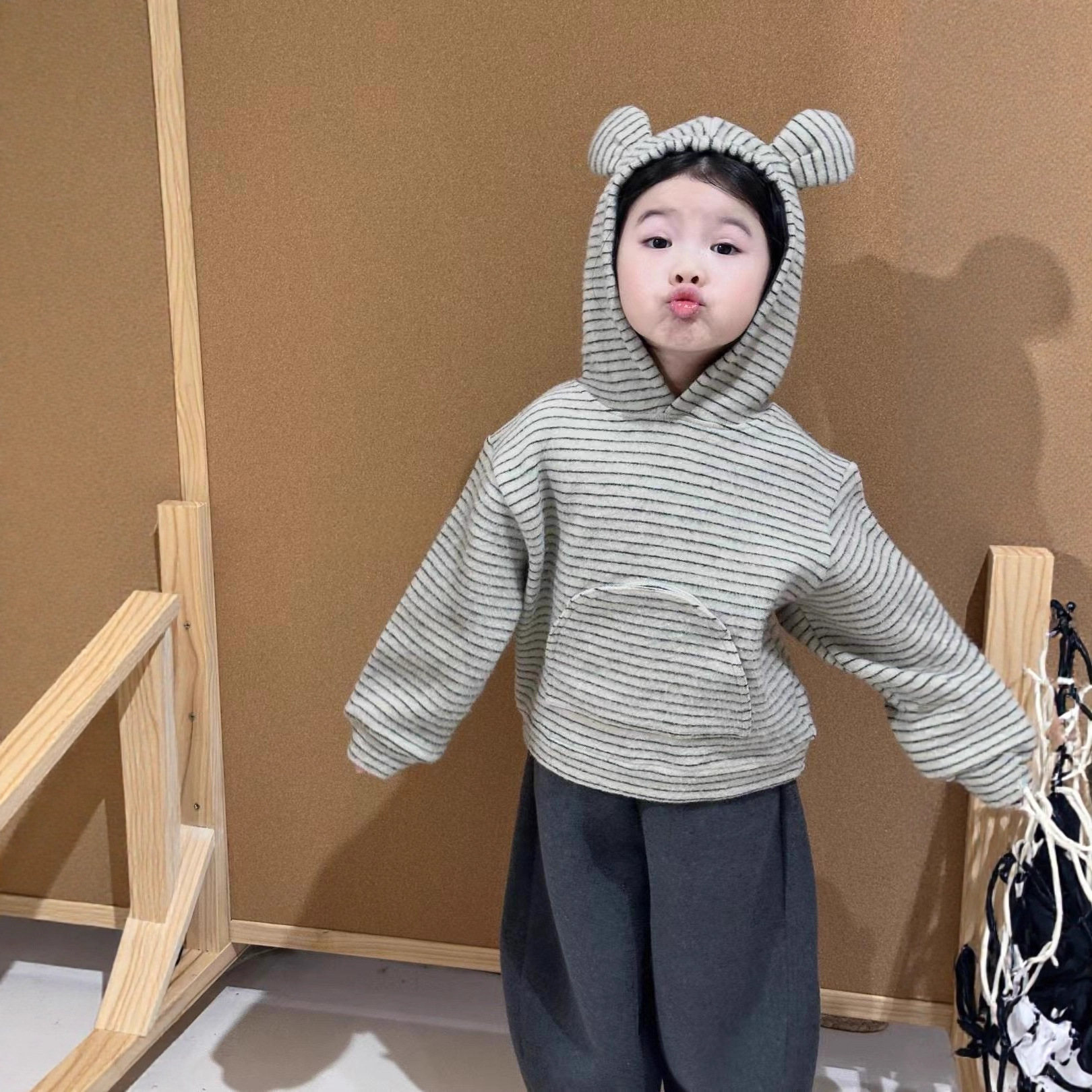 男女童条纹连帽卫衣小熊耳朵上衣