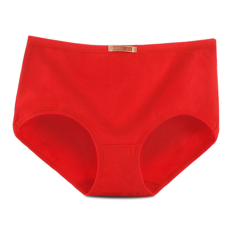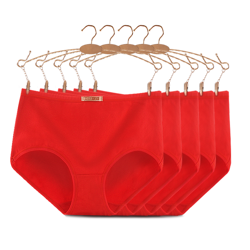 本命年内裤女纯棉大红色中高腰大码三角裤结婚全棉属鼠属牛 5条装