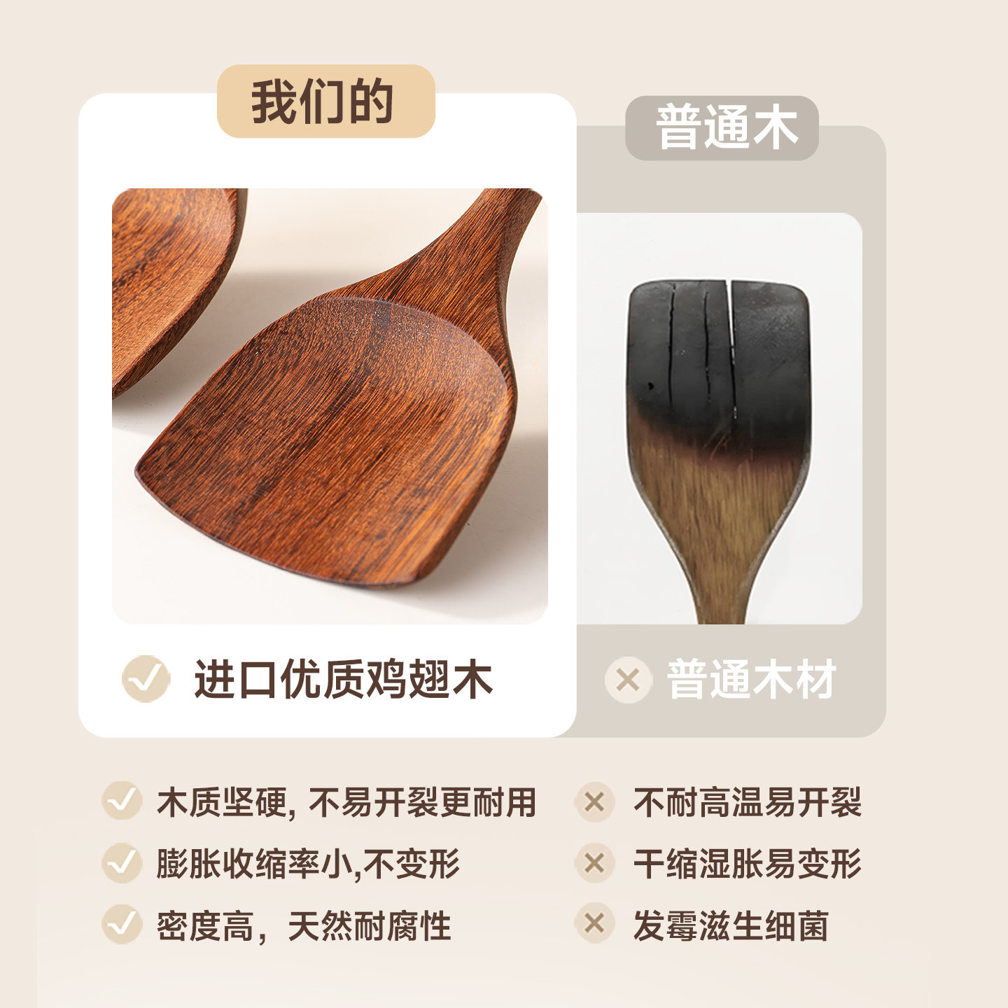 onlycook加厚鸡翅木锅铲无漆无蜡